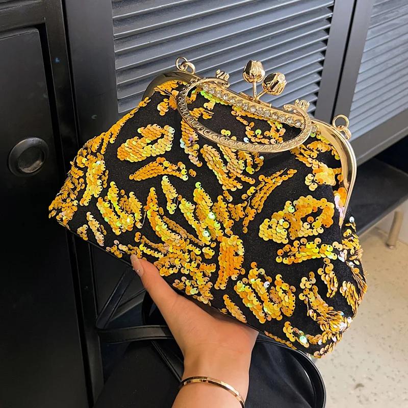 Женские роскошные сумки с кристаллами в виде ракушек и пайетками, блестящие сумки с цветами, синие сумки через плечо, сумки на ремне с золотой цепочкой, вечерний клатч
