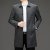 Осенне-зимняя мужская шерстяная ветровка средней длины, деловое повседневное пальто с лацканами, клетчатое пальто для пап среднего и пожилого возраста