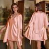 Женский летний удобный комплект для сна из ледяного шелка, 2 предмета, однотонный халат-ками, пижамный комплект, сексуальная домашняя одежда