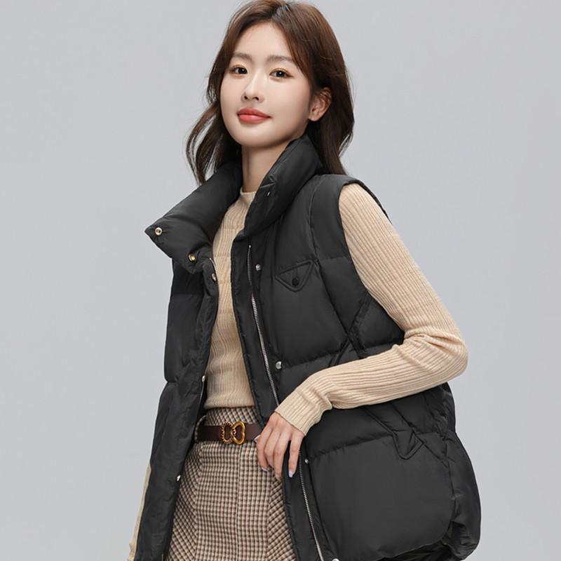 Down jacket women's new stand-up collar down vest vest in autumn and winter 2024 90 white duck down loose coat tide