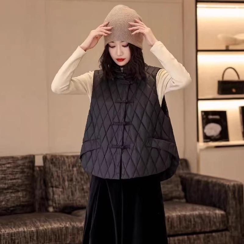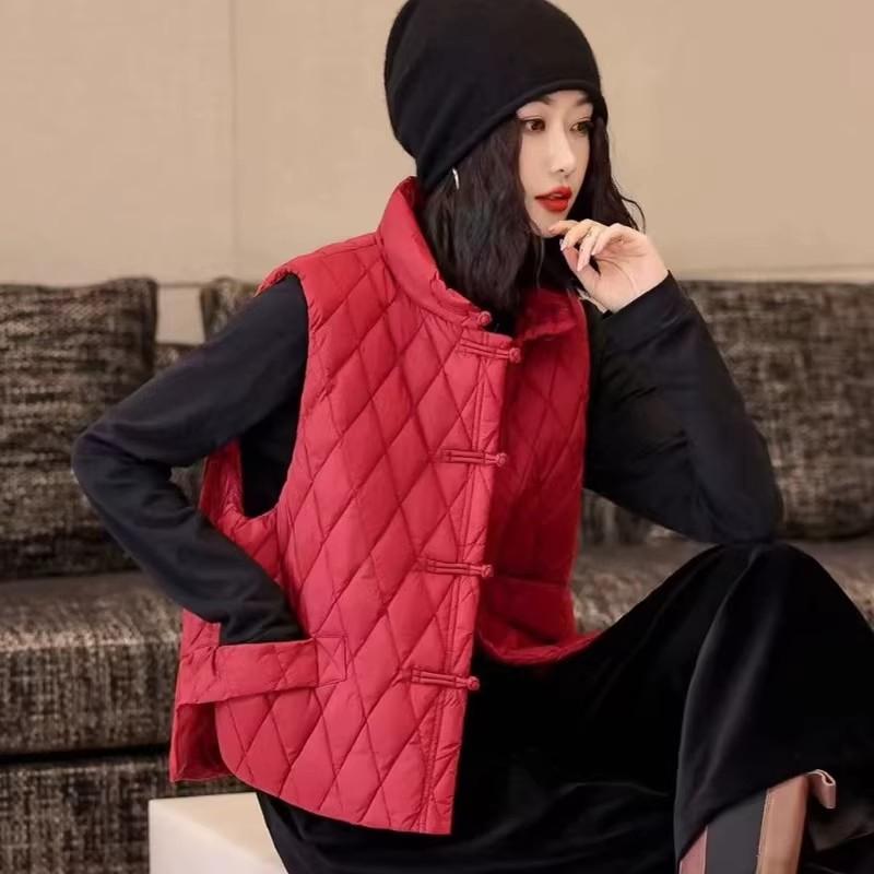 Новый китайский жилет из белого утиного пуха с пряжкой, женская зимняя одежда, новый модный жилет большого размера с бриллиантами, пуховая подкладка