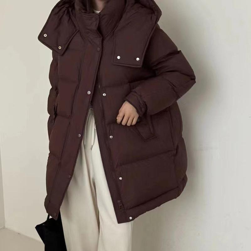Зимняя утолщенная морозостойкая куртка на гусином пуху средней и длинной длины для женщин 2024 года, зимняя куртка высокого класса, повседневная куртка прилив