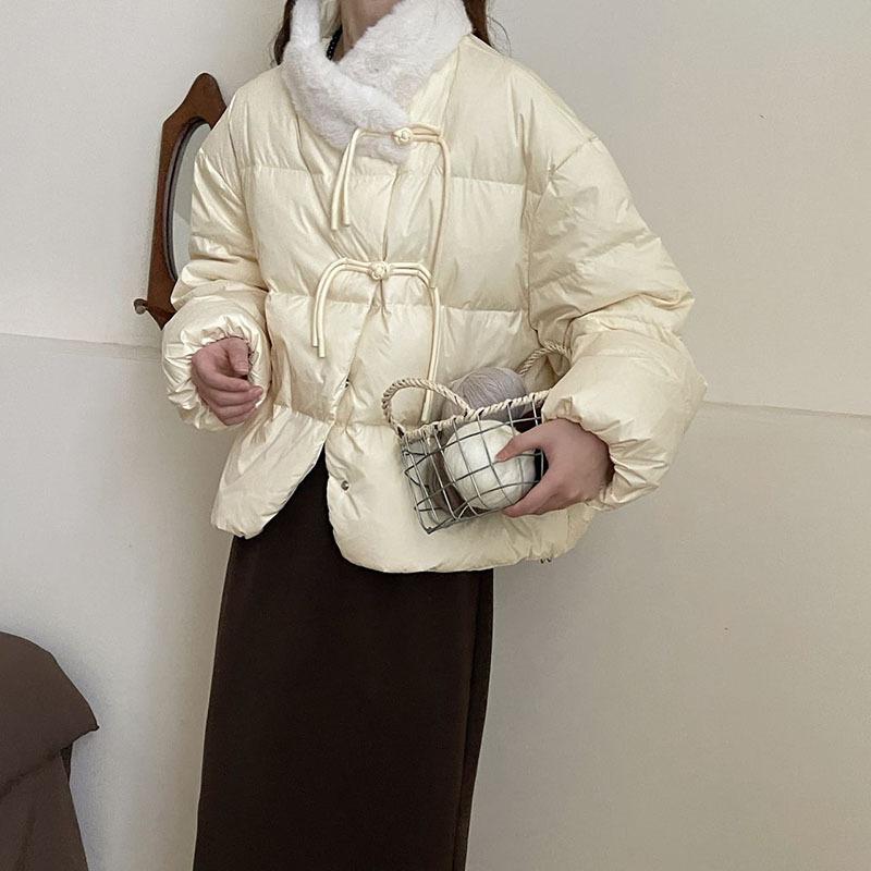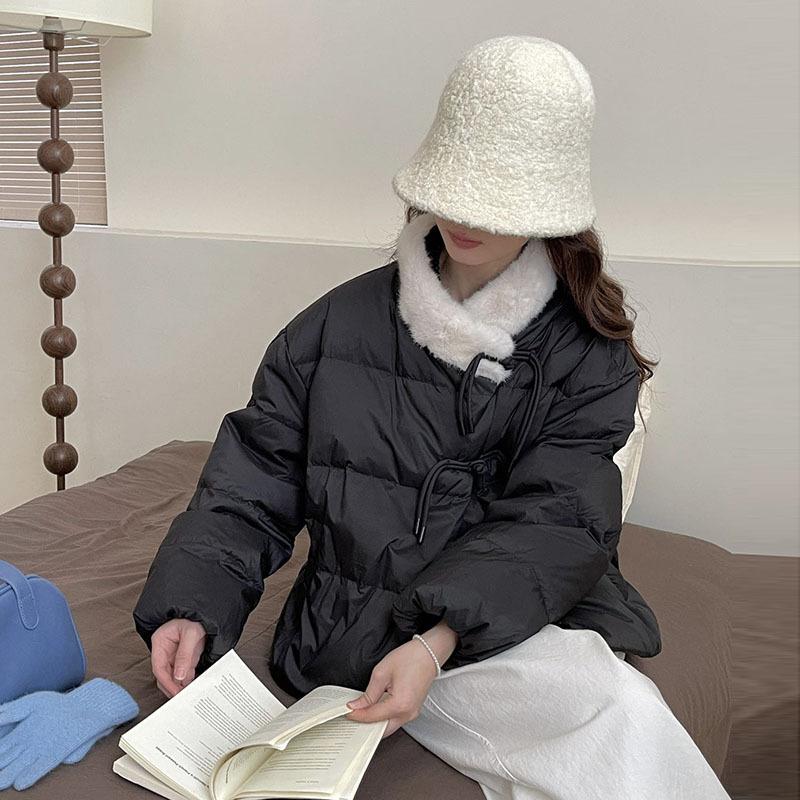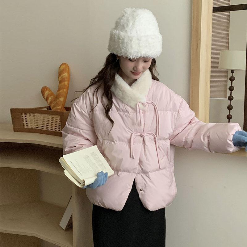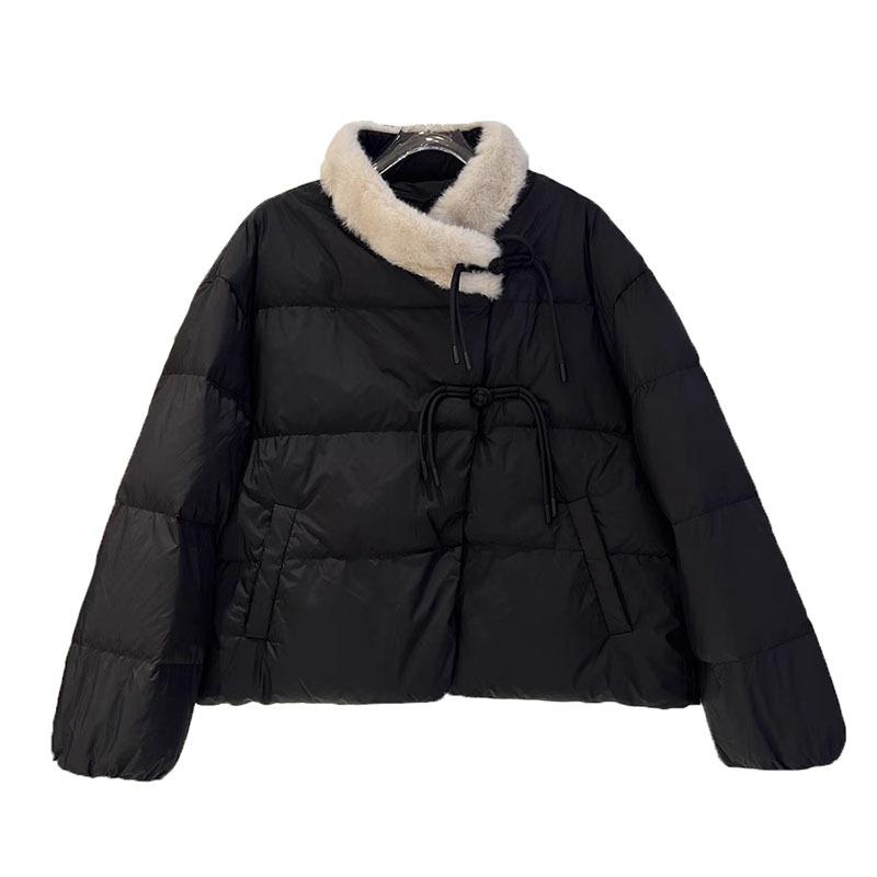 Rabbit fur splicing short down jacket women's 2024 winter Korean sweet buckle thickened small slim jacket
