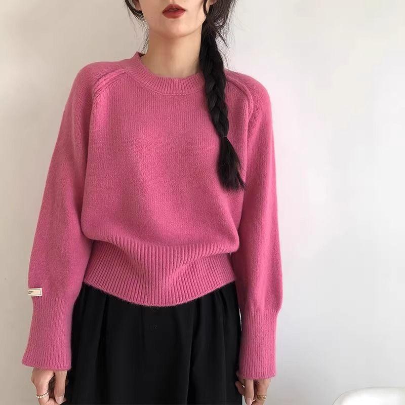 Новый корейский шикарный круглый вырез свободный свитер женский зимний однотонный низ рубашка трикотажные топы простой дизайн повседневный пуловер — купить товар онлайн с бесплатной доставкой по всему миру!