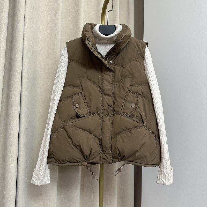 Модный белый жилет из утиного пуха, женский стоячий воротник, новинка зимы 2024 года, свободная верхняя одежда, жилет в иностранном стиле