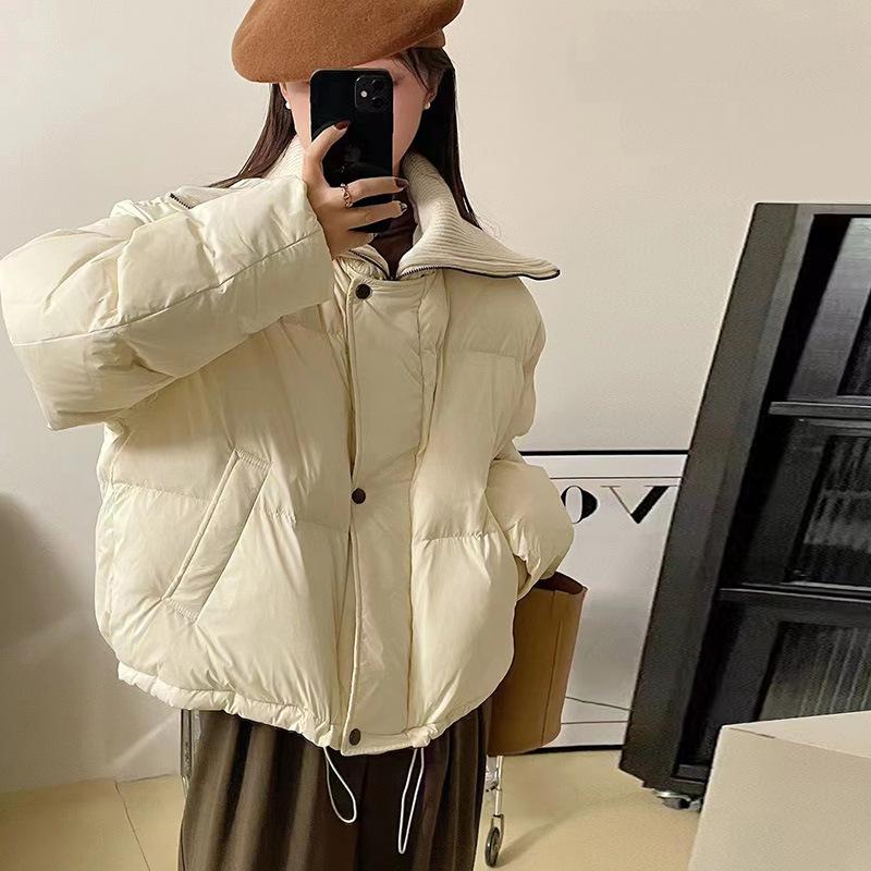 Трикотажная водолазка-пуховик женская короткая зимняя новая 2024 свободная белая утиная пуховая утолщенная теплая куртка — купить товар онлайн с бесплатной доставкой до всему миру!