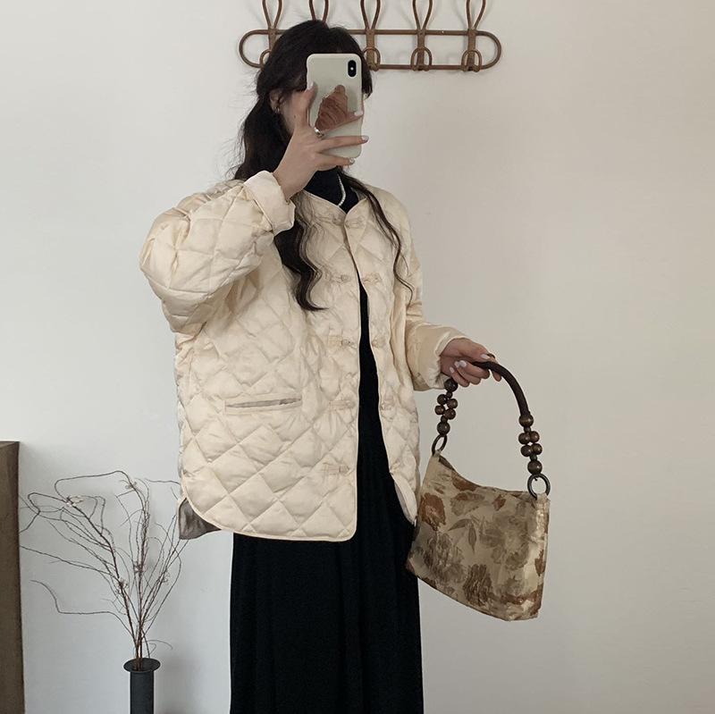 Легкая роскошная новая китайская пуховая куртка женская короткая зимняя 2024 с круглым вырезом и литературным ромбом белая утиная пуховая повседневная теплая куртка — купить товар онлайн с бесплатной доставкой до всему миру!