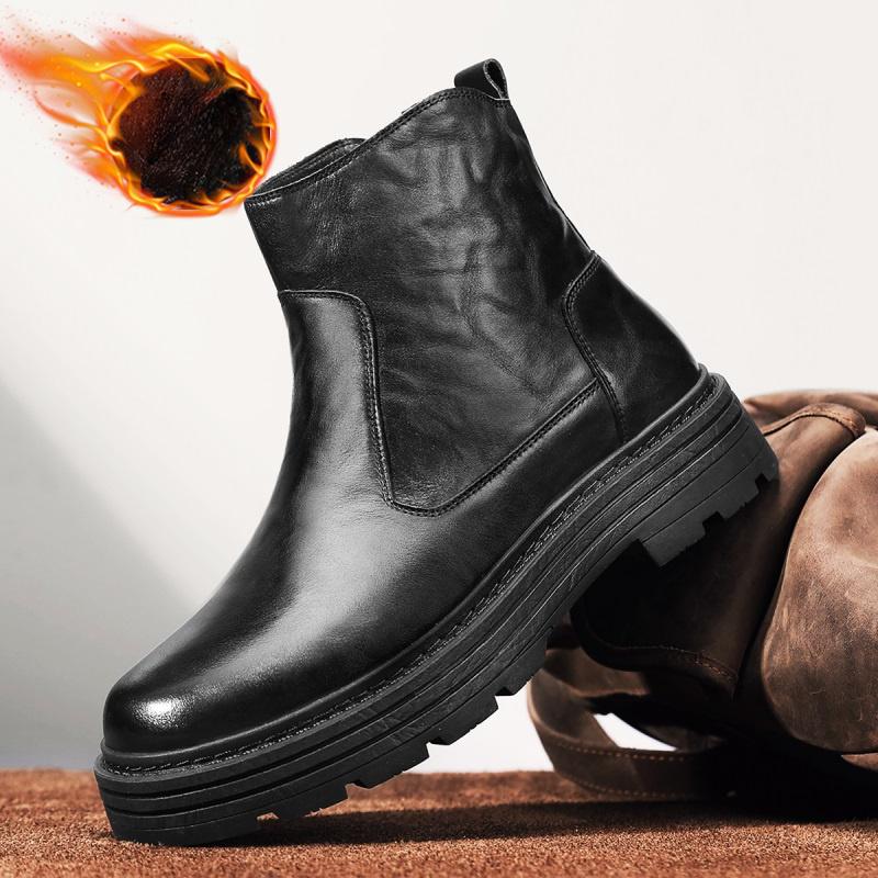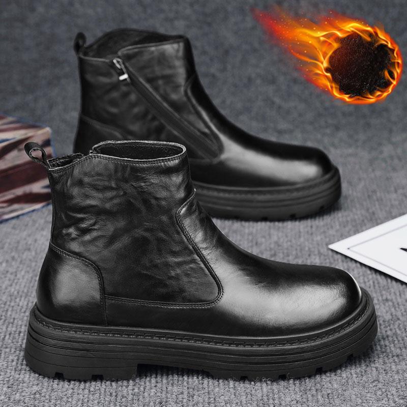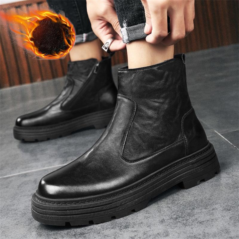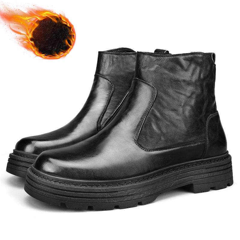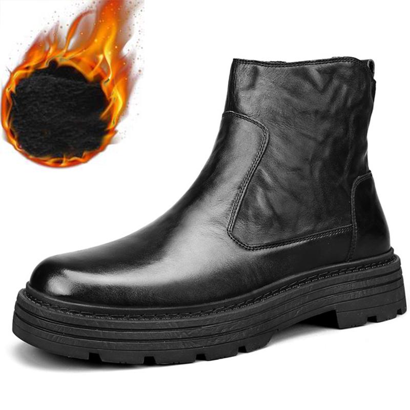 Зимние ботинки мужские из натуральной кожи в стиле ретро простые высокие повседневные ботинки на толстой подошве ботильоны