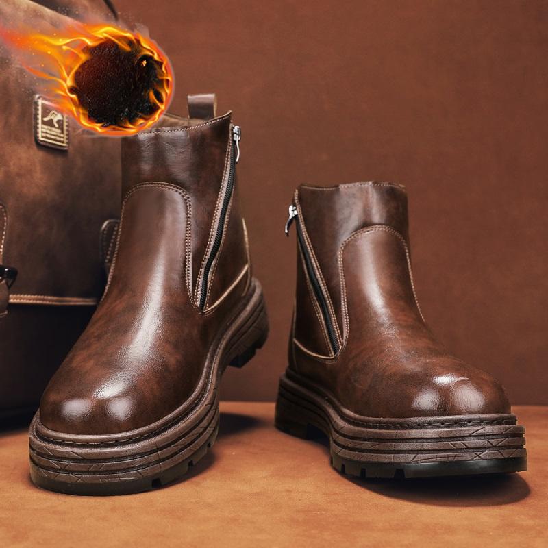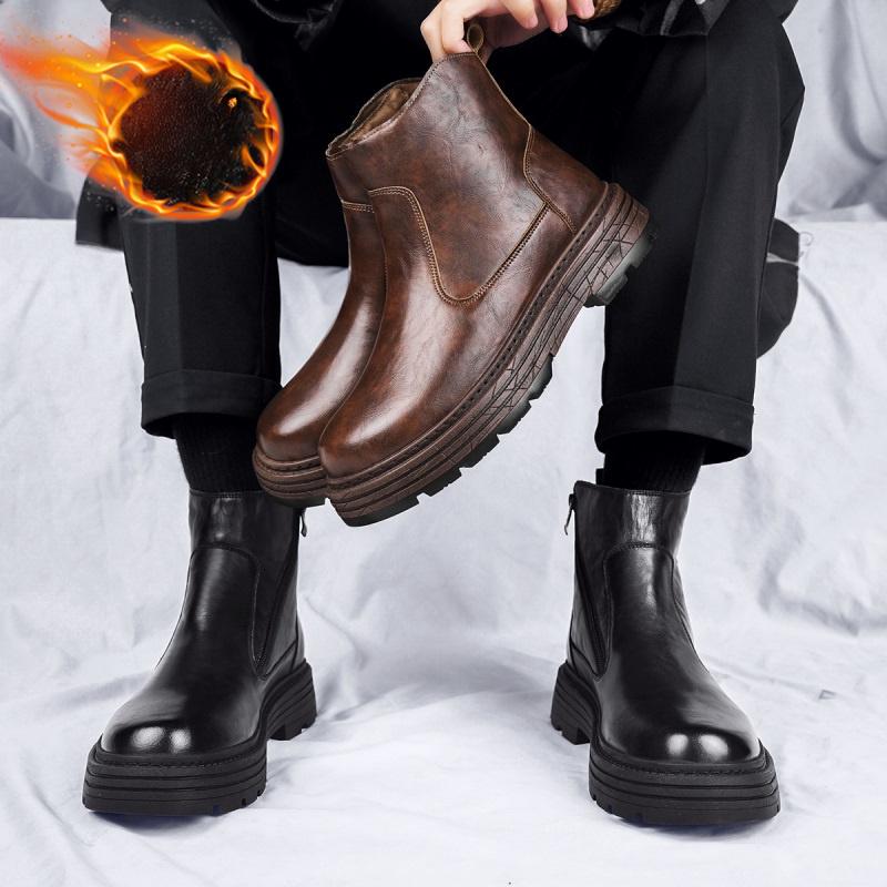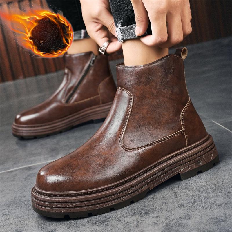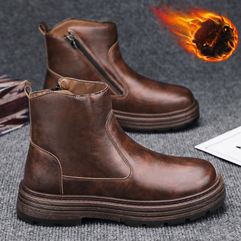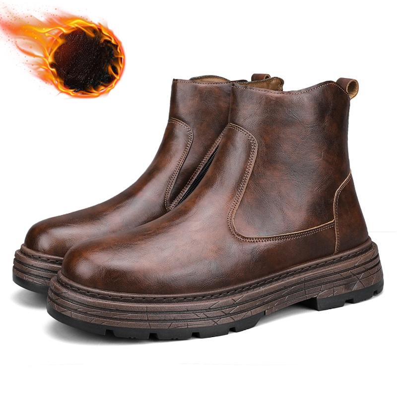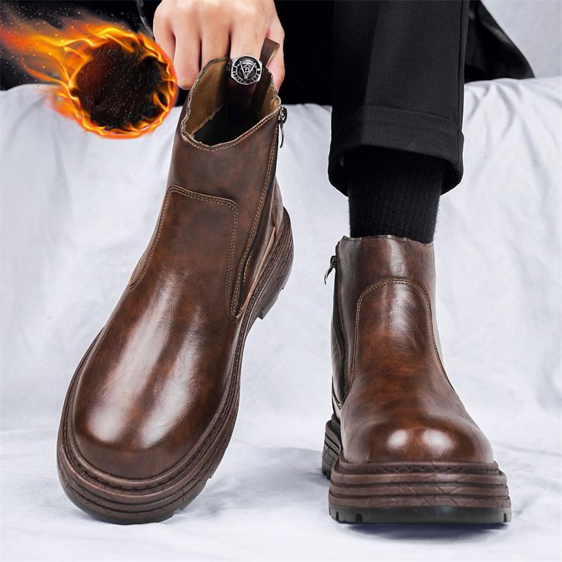 Зимние ботинки мужские из натуральной кожи в стиле ретро простые высокие повседневные ботинки на толстой подошве ботильоны
