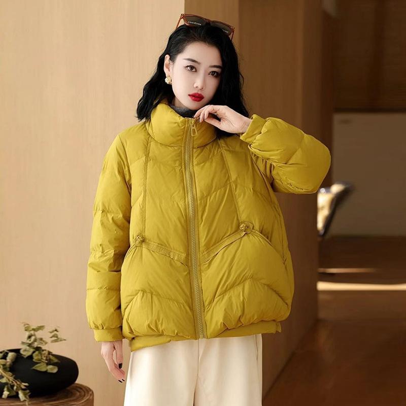 Короткая куртка-пуховик с воротником-стойкой в стиле ретро для женщин 2024 года, зимняя новая модная теплая куртка с пряжкой на белом утином пуху — купить товар онлайн с бесплатной доставкой до всему миру!