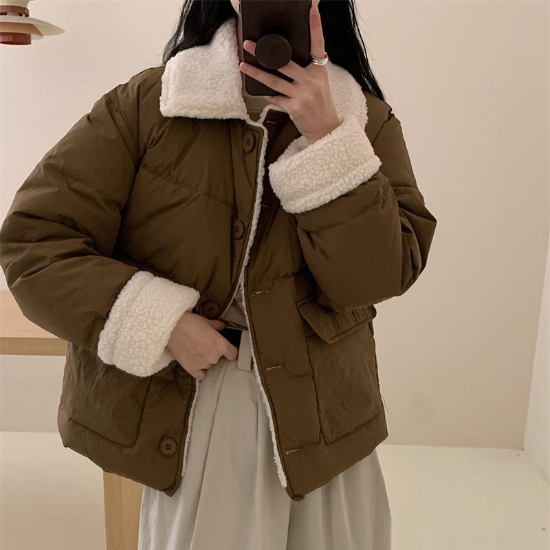 Женская короткая куртка-пуховик из овечьей шерсти, новинка зимы 2024 года, утепленная куртка из белого утиного пуха — купить товар онлайн с бесплатной доставкой до всему миру!
