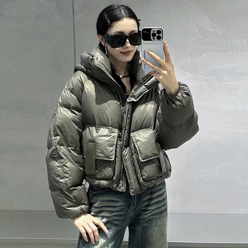 Модная короткая куртка-пуховик с капюшоном, женская зимняя новая утолщенная белая кожаная стандартная теплая куртка из утиного пуха — купить товар онлайн с бесплатной доставкой до всему миру!