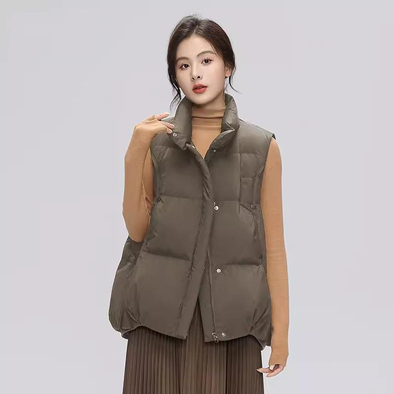 Женский пуховый жилет 2024 года, новый легкий дизайн с воротником-стойкой, теплый и носит белый жилет на утином пуху