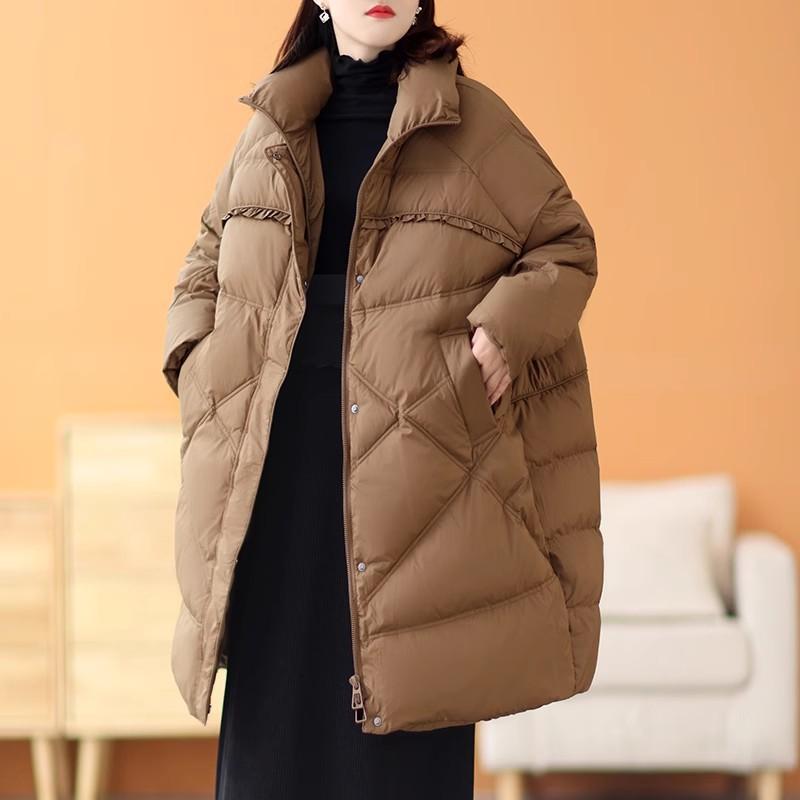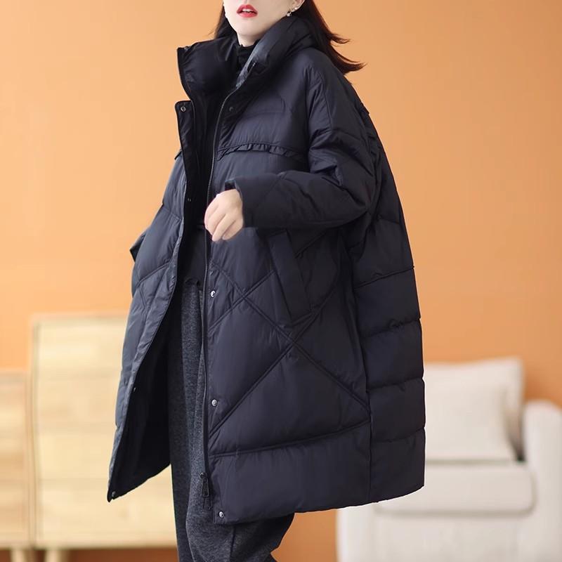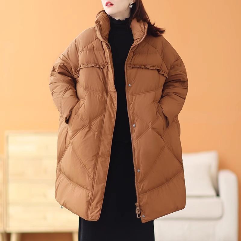 Большой размер, средний и длинный пуховик для женщин 2024 года, зимняя утолщенная ретро-куртка с грибковой кромкой, теплая свободная куртка-стойка