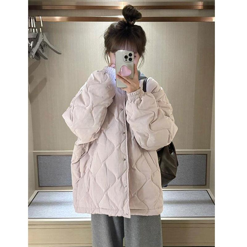 Куртка женская с овечьим ромбом из хлопка, зима 2024, новая свободная маленькая куртка-стеганая куртка для студентов — купить товар онлайн с бесплатной доставкой до всему миру!