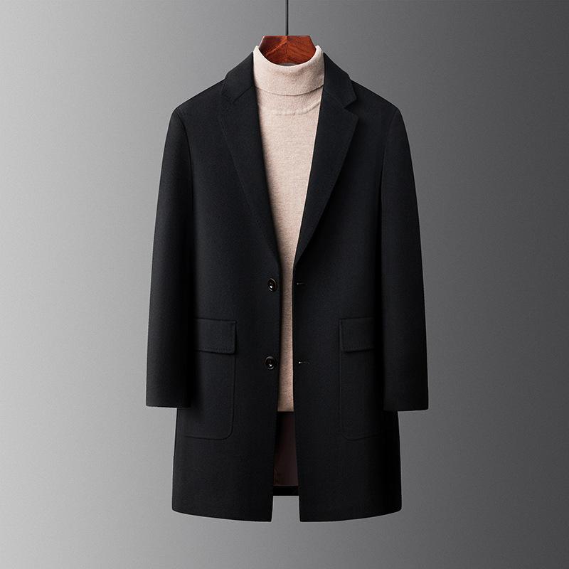 Пальто из чистой шерсти с воротником, зимнее, деловое, не требующее глажки, мужское, однотонное, высококачественное, универсальное, мужское шерстяное пальто
