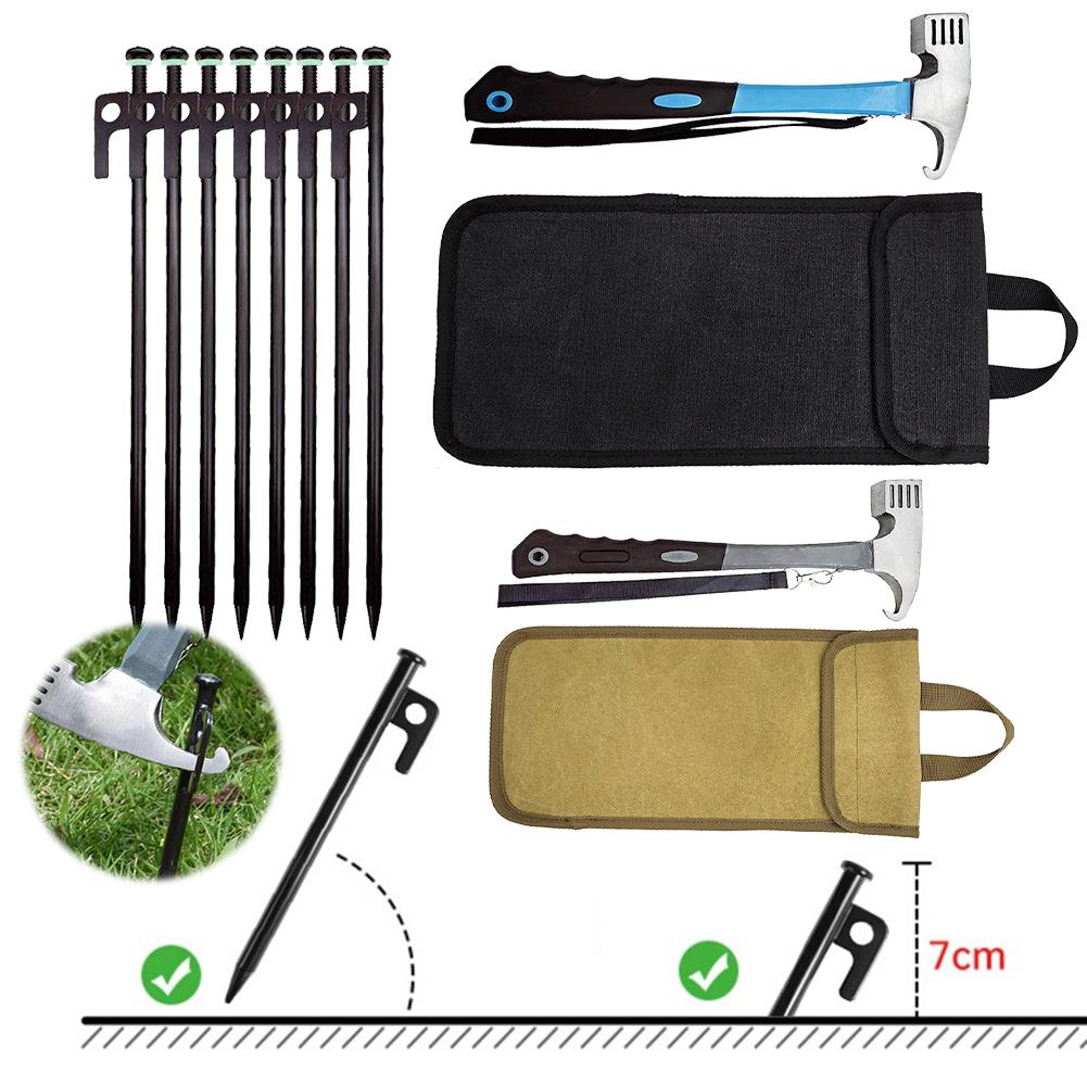 8 шт. колышков для палатки, кованые стальные колышки для палатки, прочные небьющиеся колышки для палатки 30 см с сумкой для хранения и молотком для кемпинга на открытом воздухе