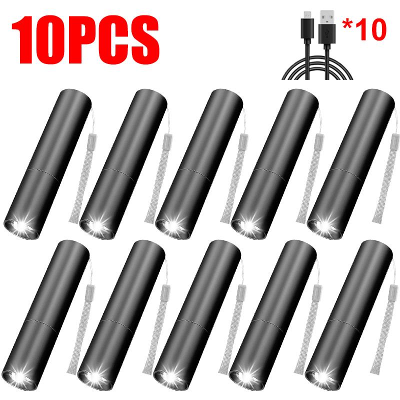 1-20PCS Mini Portable LED Flashlight Built In Battery USB Rechargeable Waterproof Torch Outdoor Camping Night Emergency Light