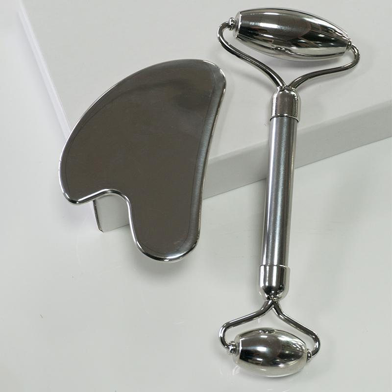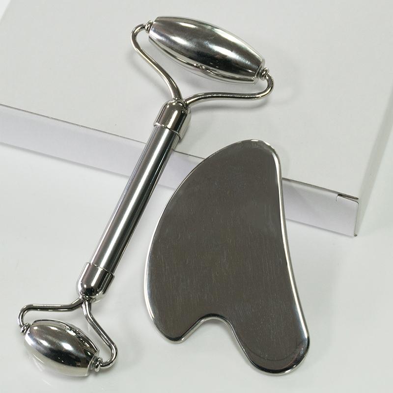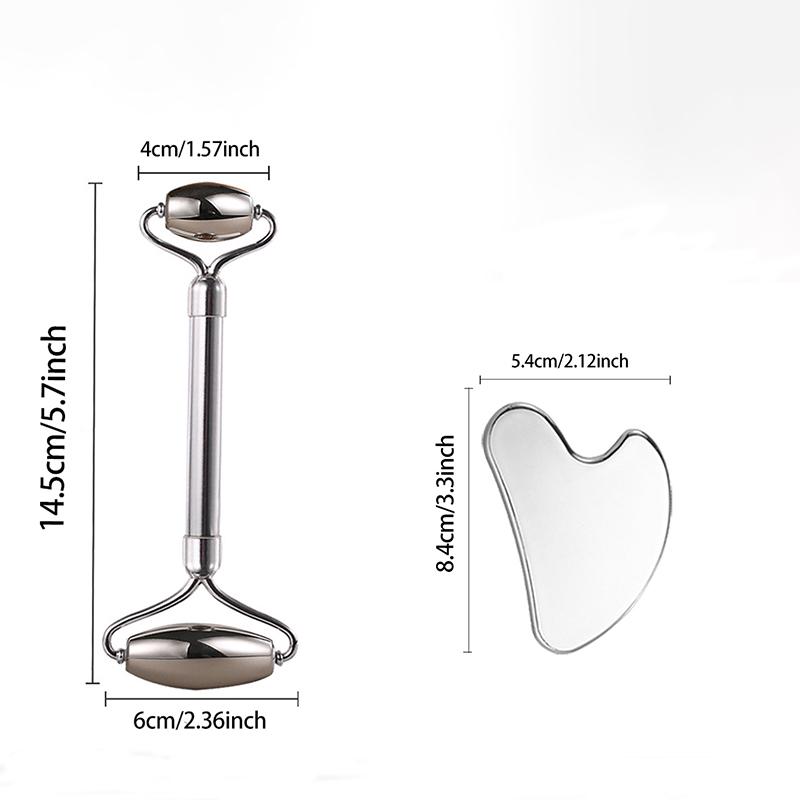 2 шт., доска для чистки лица и глаз из нержавеющей стали в форме сердца с двойным роликовым массажером, инструмент для массажа мышц и ухода за кожей