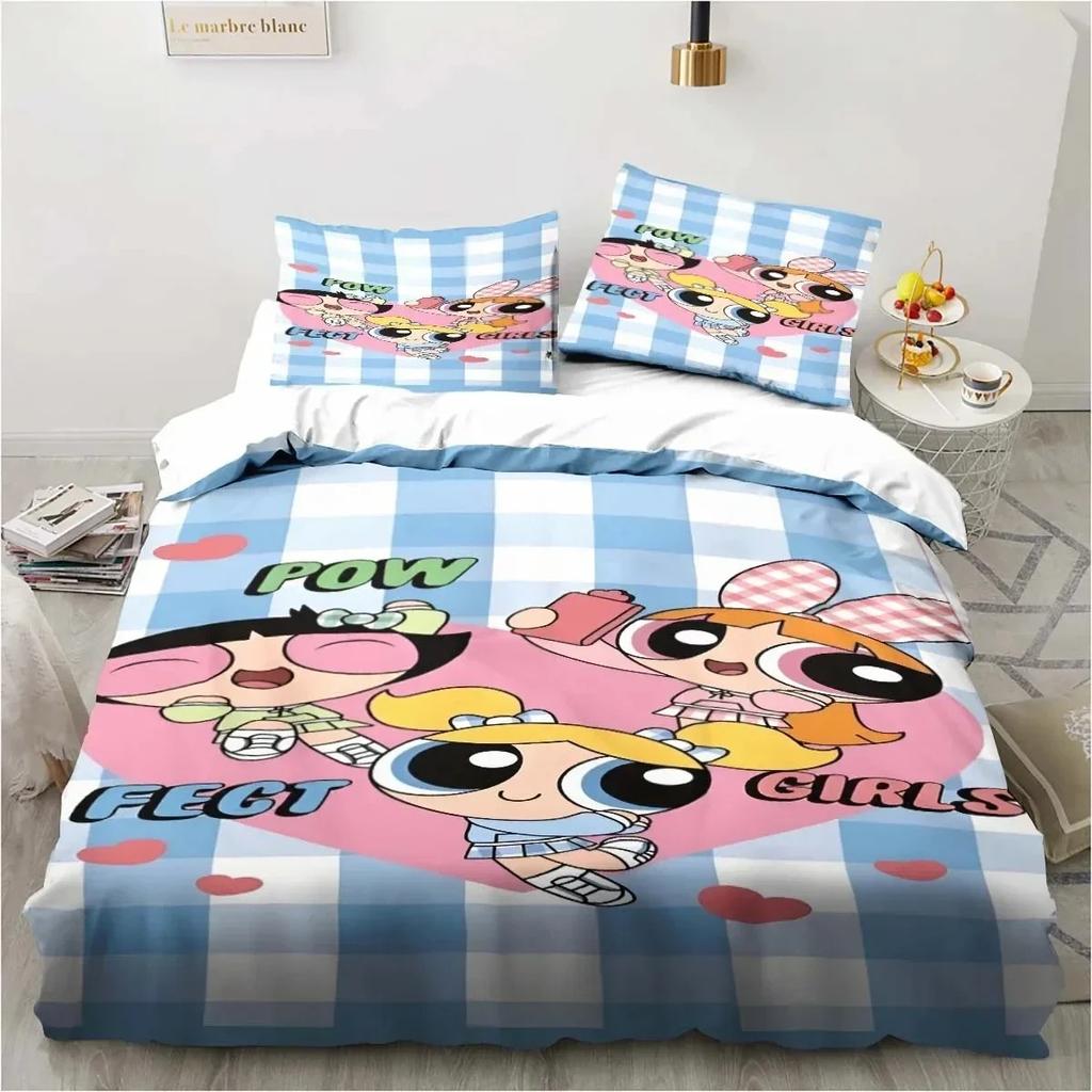 Аниме Пауэрпафф Милые Девочки Мультяшный Постельный Комплект Пододеяльник Комплект Постельного Белья Покрывало Наволочка Одеяло Кинг Королева Размер Мальчики Взрослые