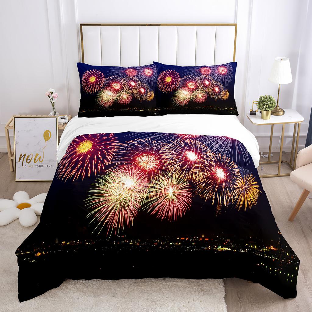 Пододеяльник Firework Queen Size, комплект постельного белья с разноцветными огнями, микрофибра, тема «Празднование Рождества», мягкий чехол для одеяла