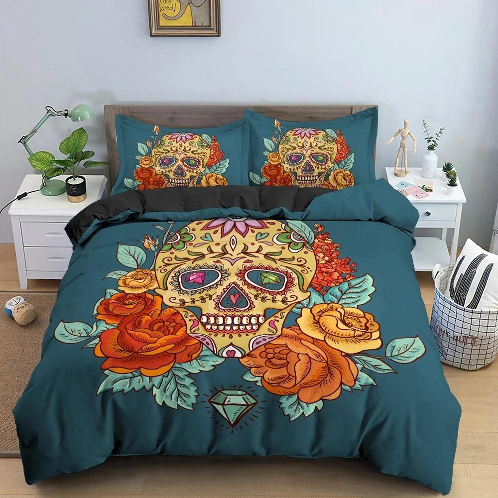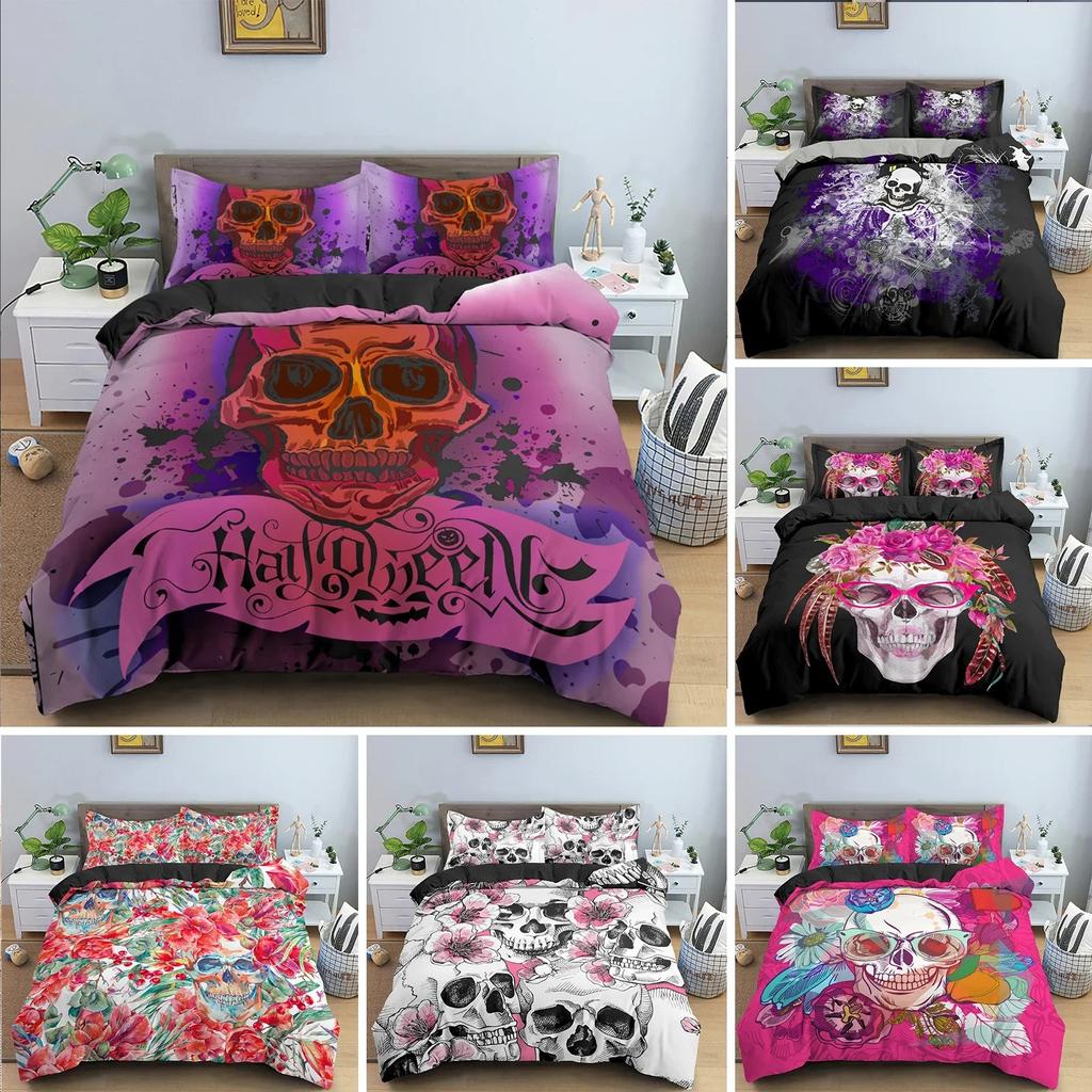 Мягкий комплект постельного белья Hot Style с 3D-цифровым принтом черепа, пододеяльник на молнии, односпальная кровать Twin Double Full Queen King