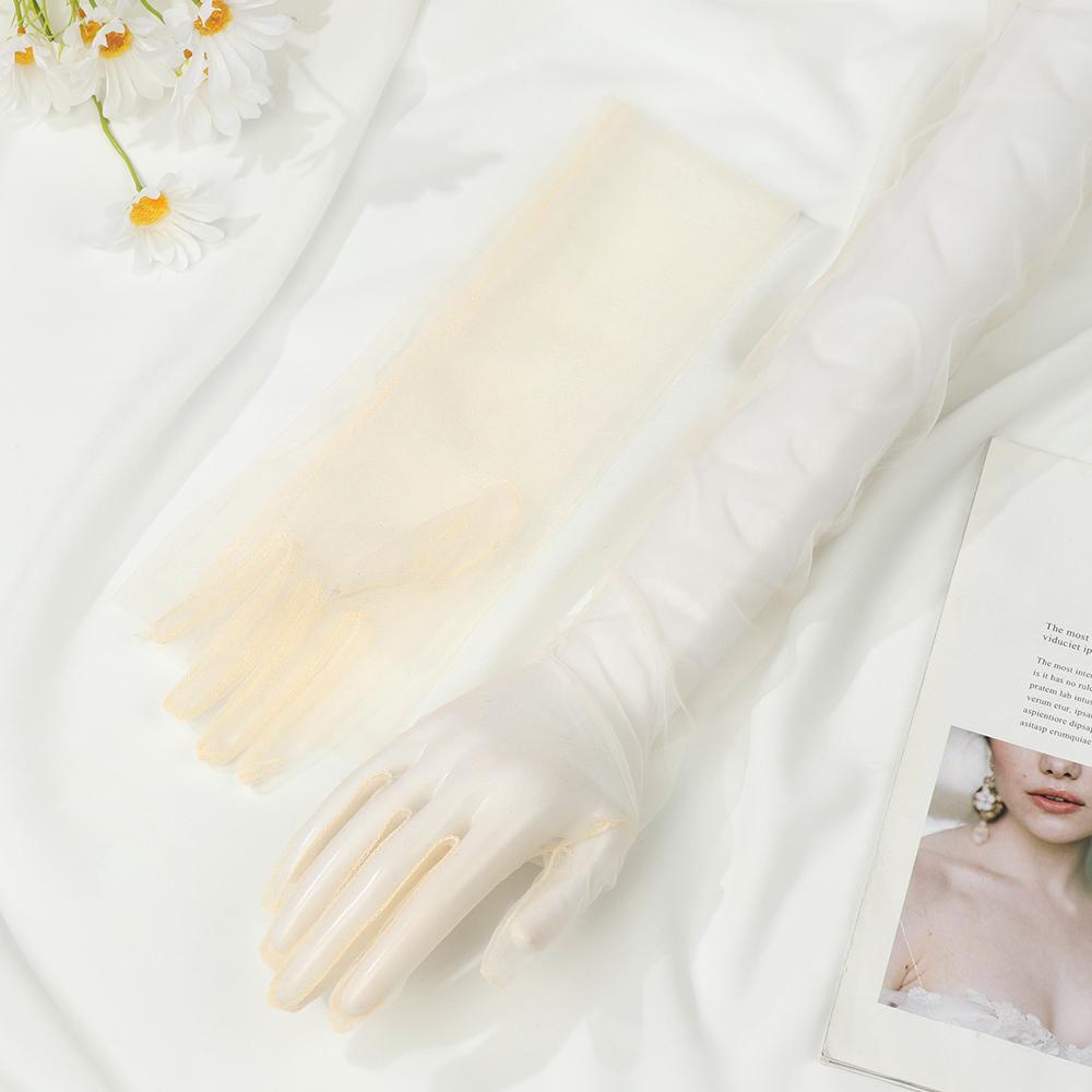 1 пара женских ультратонких перчаток из тюля длиной до локтя, варежки для свадебного платья невесты, прозрачные винтажные перчатки