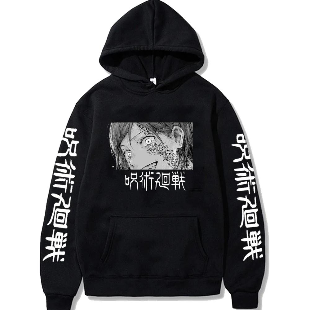 Мода Аниме Дзюдзюцу Кайсен Кугисаки Нобара Толстовки Крутой мультфильм Черно-белый принт Харадзюку Уличная одежда Повседневные толстовки