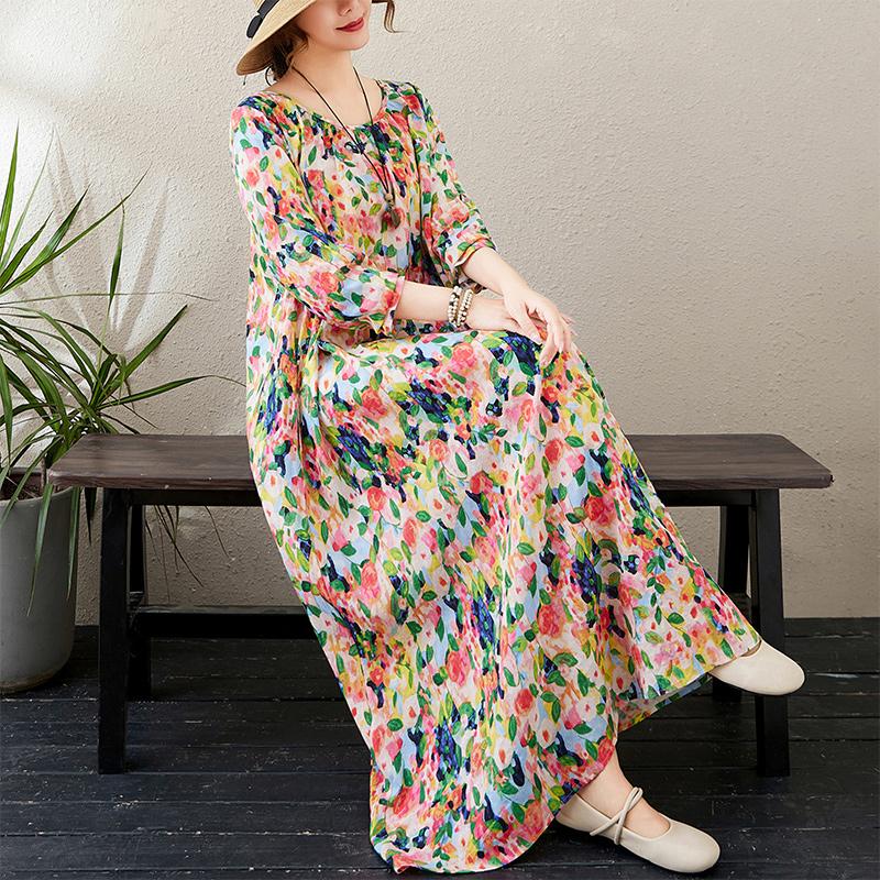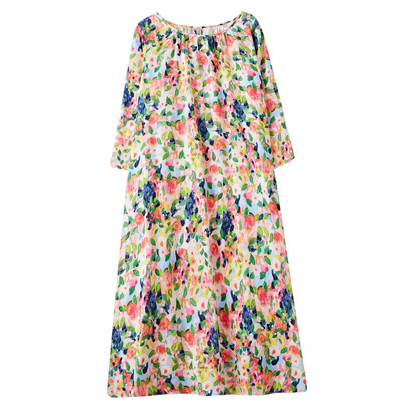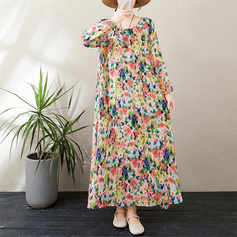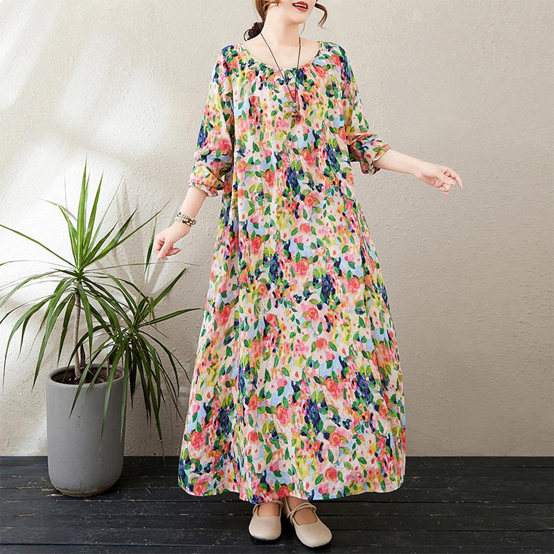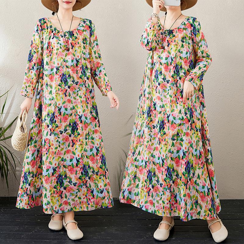 Dimanaf Новое 2025 женское весеннее платье больших размеров, свободное базовое цветочное винтажное длинное платье, элегантное повседневное хлопковое