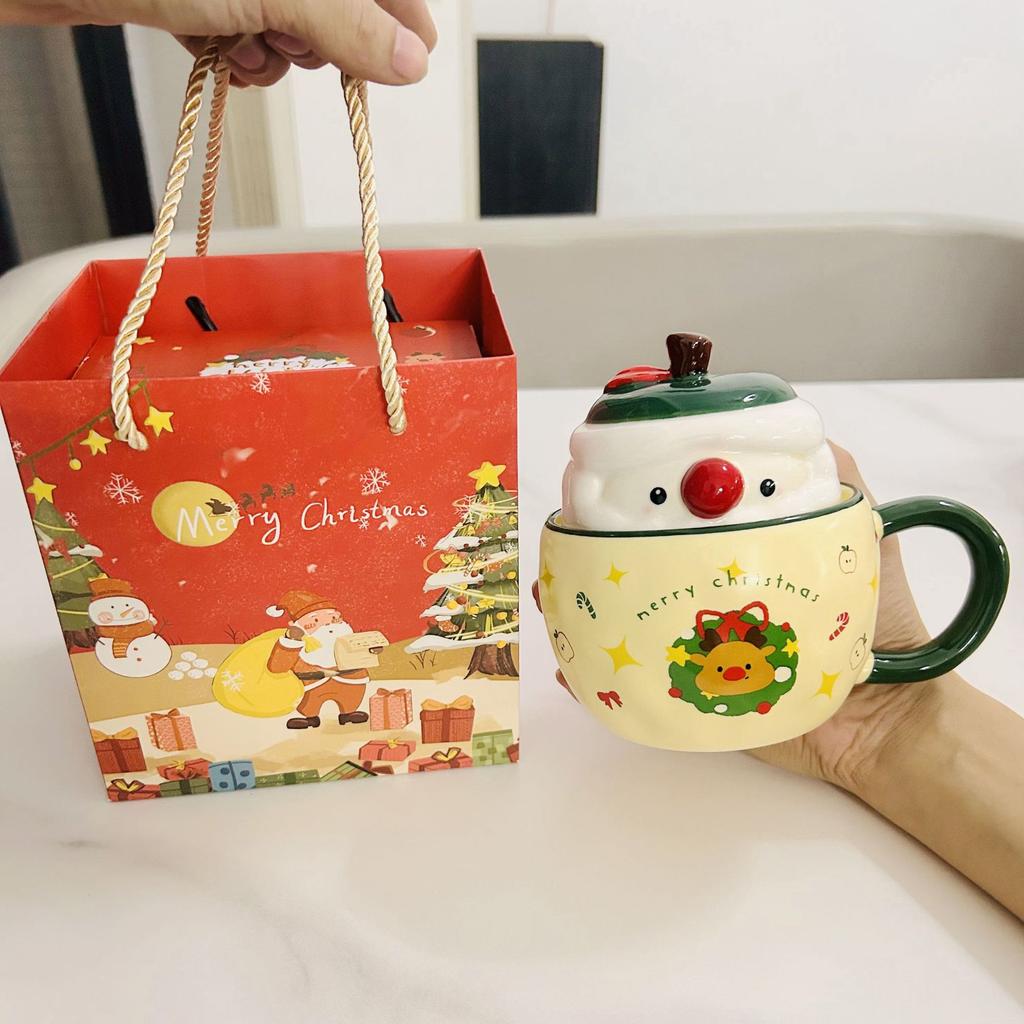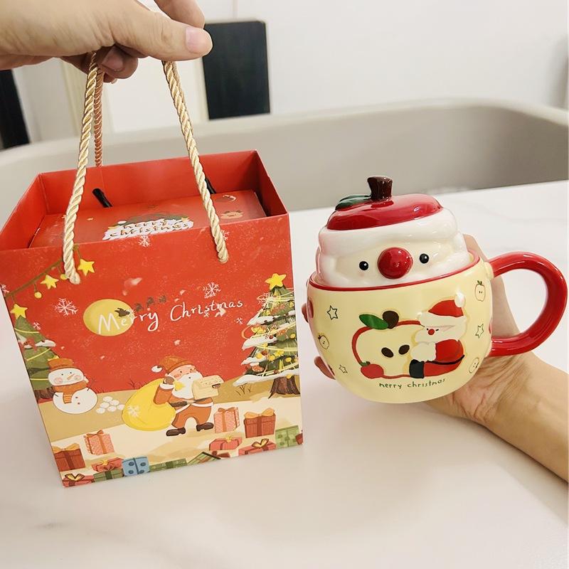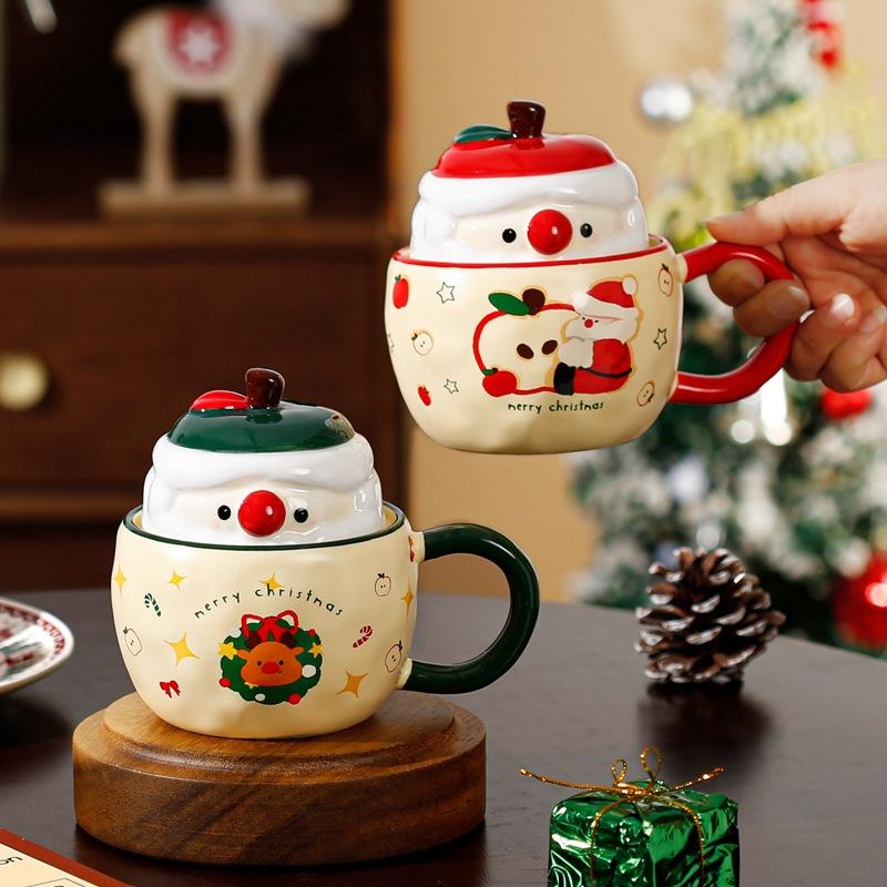Креативная рождественская керамическая кружка Apple, кофейные чашки с крышкой, чашка для молока и воды, чайная чашка, рождественский подарок друзьям