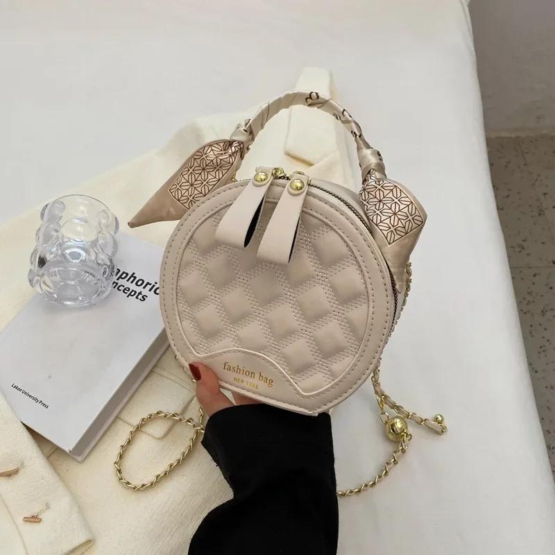 Женская сумка через плечо в стиле ретро, французская, однотонная, маленькая, круглая, большой емкости, кроссбоди