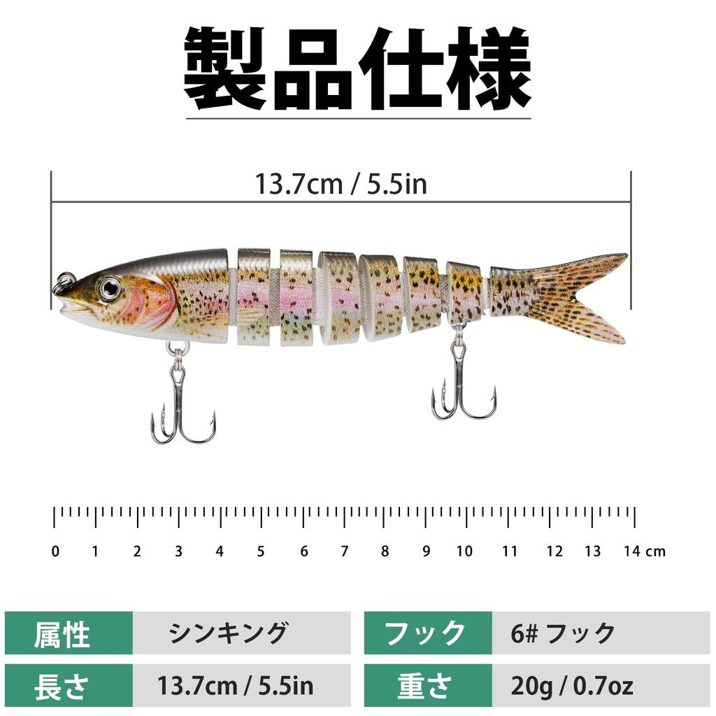 Характеристики: длина: 5,5"/14 см Вес: 0,9 унции/25 г Глубина плавания: Материал 6-8 футов: Твердый АБС-пластик, ментальный, стальная проволока, 3D-глаза, погремушки, крючки. Применимая рыба: окунь, судак, щука, маскин, плотва, форель и т. д.. Характеристики: Сочлененные медленно тонущие рыболовные приманки — одни из лучших аксессуаров, которые стоит иметь в коробке со снастями.. Создайте эффектное подводное действие, чтобы привлечь рыбу, и используйте остроту крючка, чтобы поймать ее.. Подходит как для соленой, так и для пресной воды и является идеальной приманкой для заядлого рыболова-любителя.