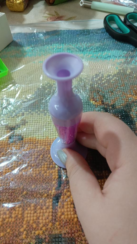 Тот самый случай, когда алмазная становится одним из самых любимых времяпровождений. Доставка составила около 2х недель. При транспортировке ничего не повредилось и ручка пришла без брака. Стикс для алмазной сделан в виде вазы на подставке. Смотрится интересно и оригинально. В руке лежит удобно, несмотря на объемные формы. Внутри есть пустое пространство. В нем можно хранить стразы или оставить кристаллы, которые уже засыпаны. Стразы на ручку крепятся хорошо. По размеру все подходит. Покупкой осталась довольна. Красивая и необычная помощница для сбора алмазных картин. К приобретению рекомендую.