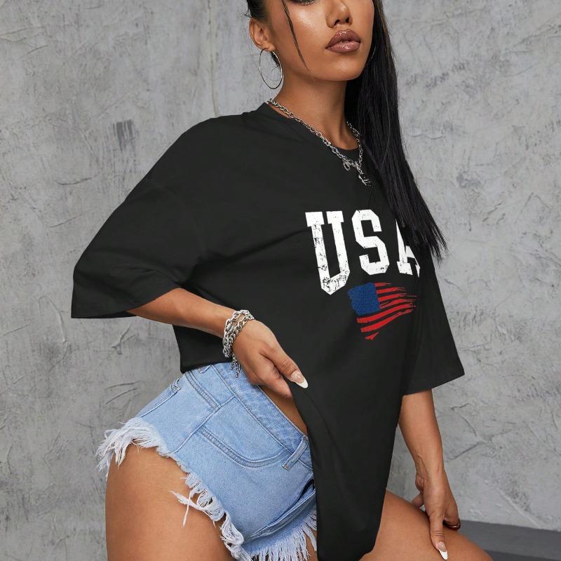Летняя женская футболка из чистого хлопка с короткими рукавами и принтом в виде флага и букв, с открытой спиной, модная повседневная женская футболка с короткими рукавами, женские футболки