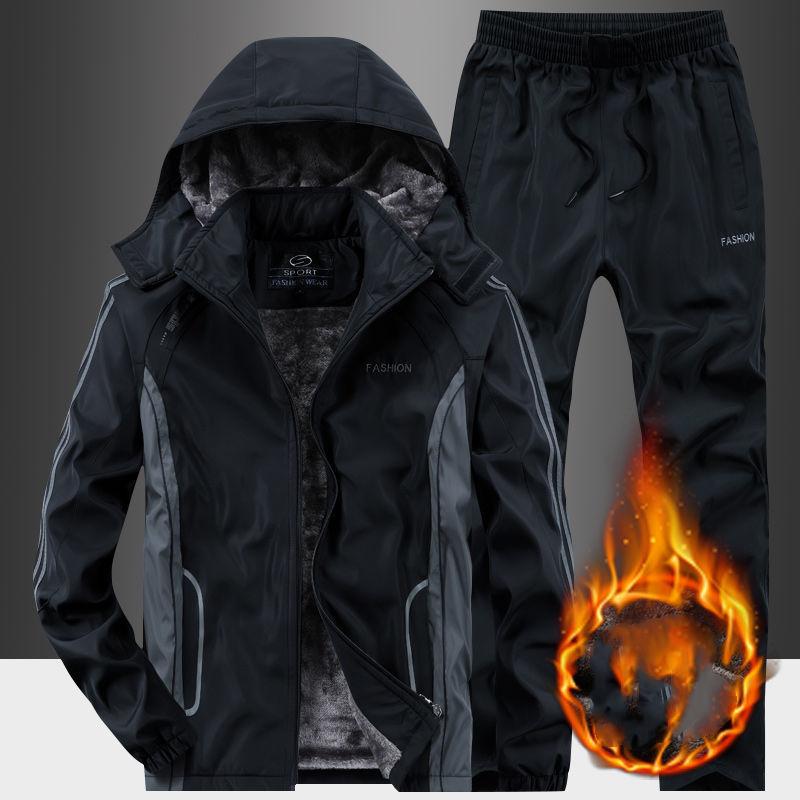 Мужской комплект из 2 предметов для снега больших размеров: кардиган с капюшоном и длинными рукавами + теплые штаны — купить товар онлайн с бесплатной доставкой по всему миру!