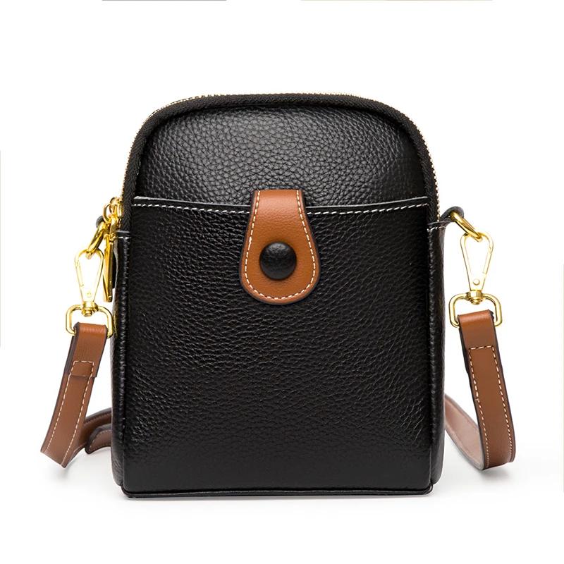 Женские однотонные сумки через плечо из коровьей кожи, дизайнерские 2 молнии, маленькая сумка из натуральной кожи, модные женские сумки