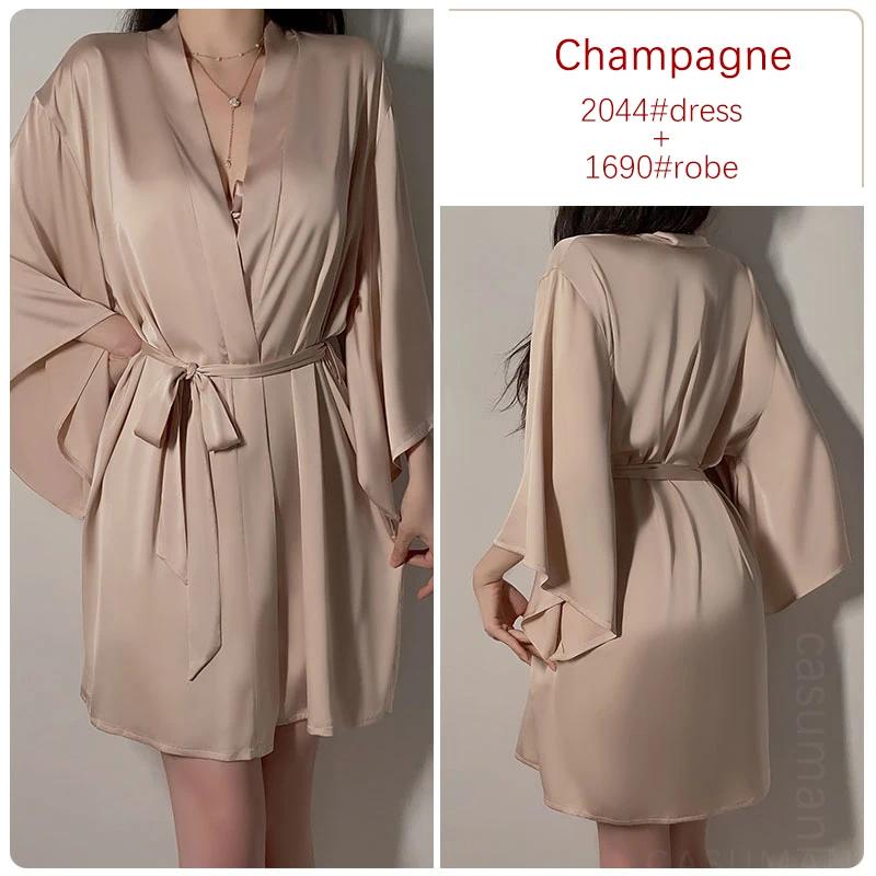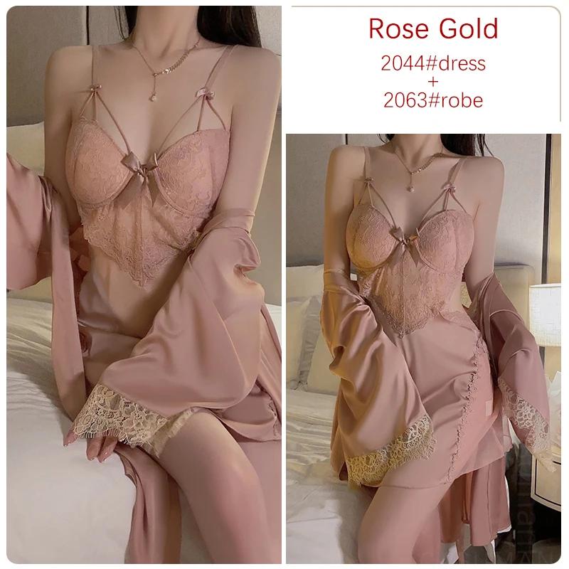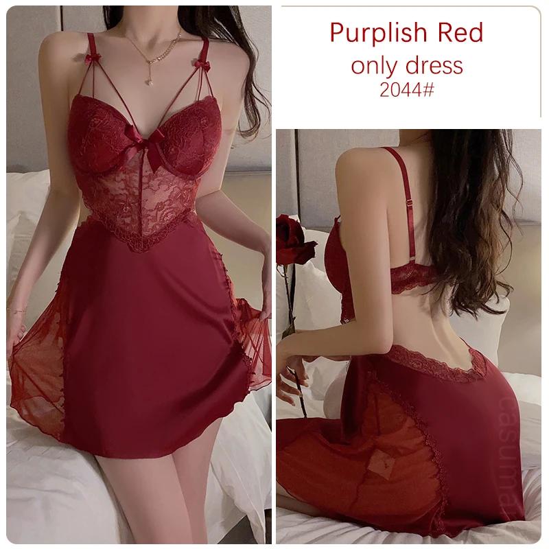 Атласное нижнее белье Женский пижамный комплект Платье с открытой спиной на подтяжках с бюстгальтером Женская сексуальная пижама