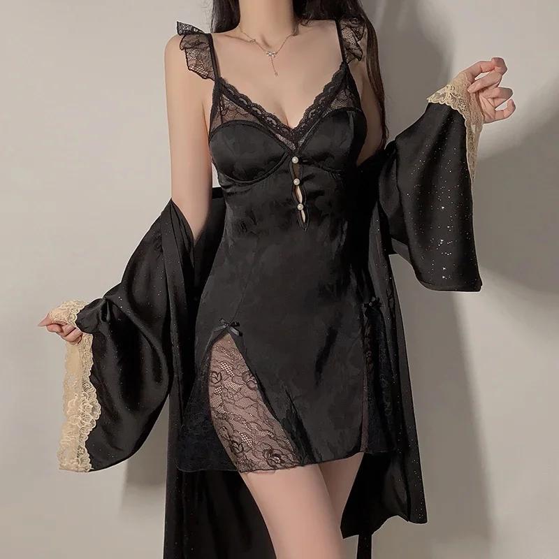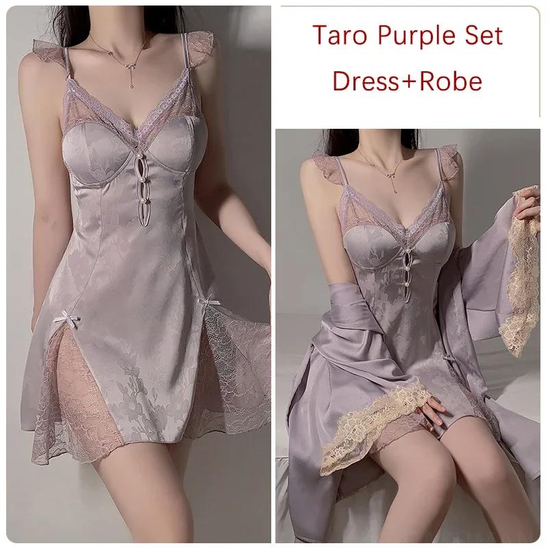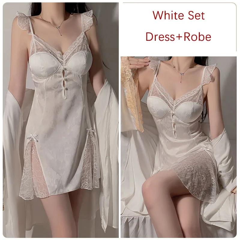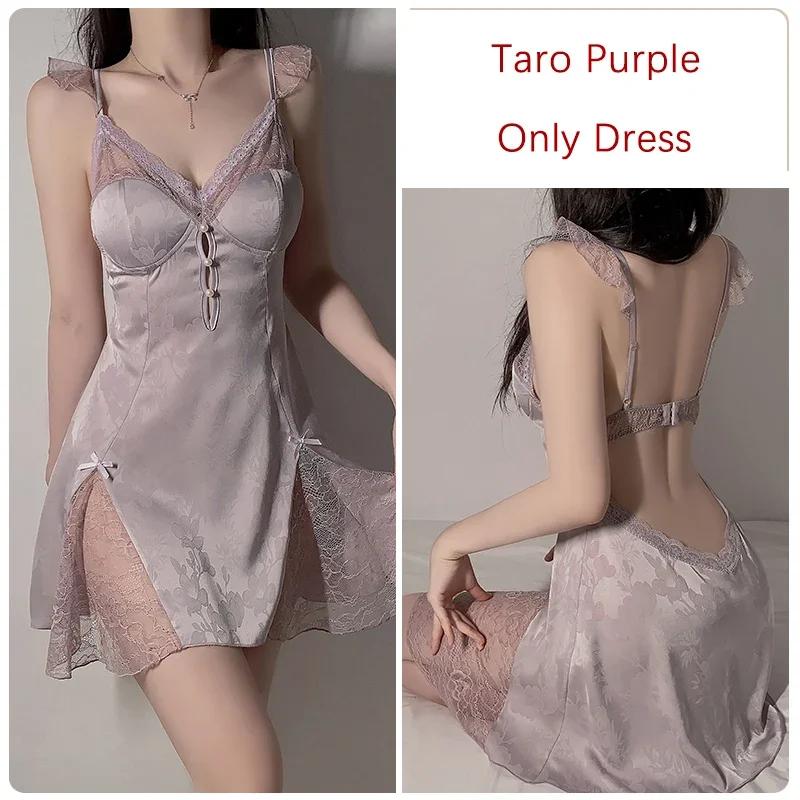 Белый женский пижамный комплект с открытой спиной, кружевное мини-платье с подвязками и бюстгальтером, сексуальная женская пижама