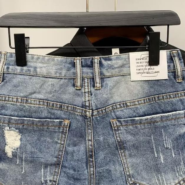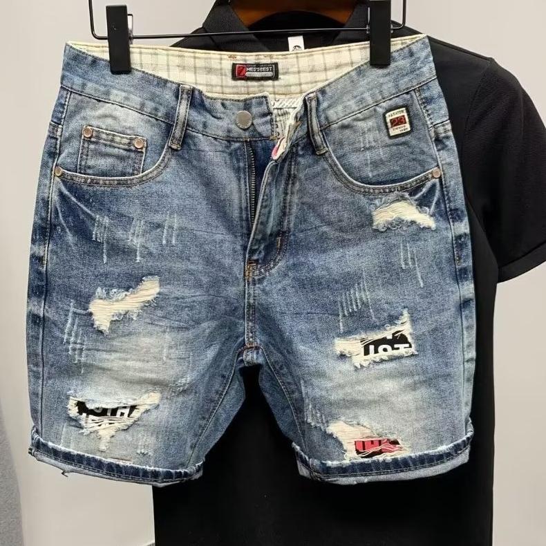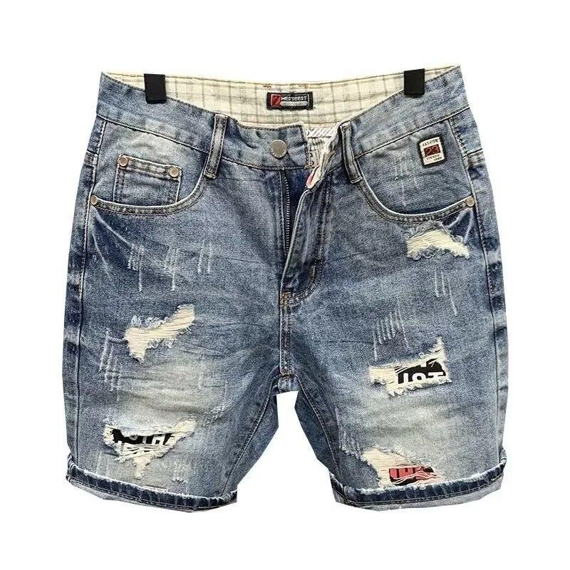 Мужские свободные джинсовые шорты с прямыми отверстиями, модные брендовые летние рваные джинсовые шорты
