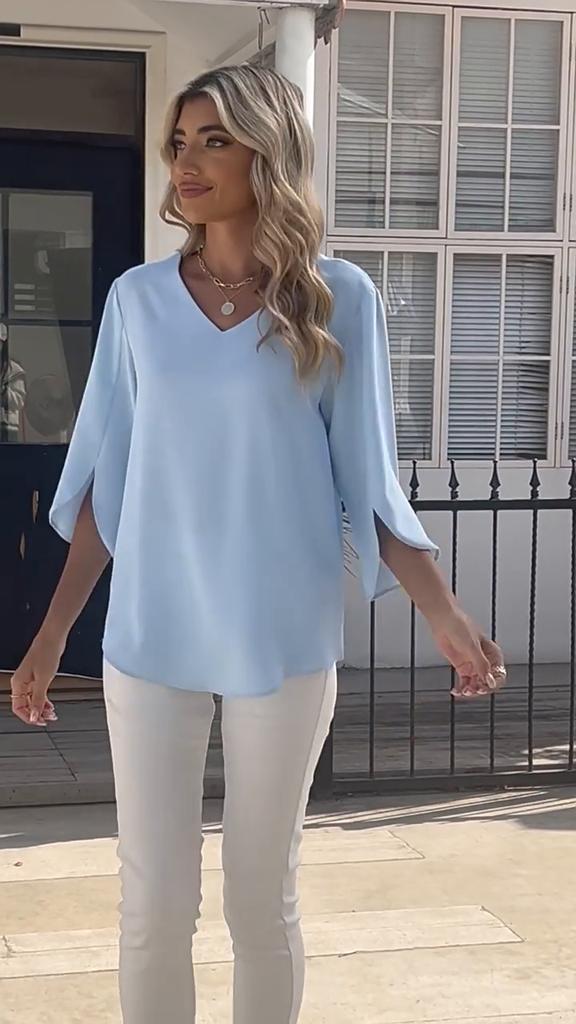 YYFS Женские модные повседневные летние весенние однотонные блузки и рубашки с v-образным вырезом и короткими рукавами с принтом