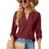 YYFS Женские модные повседневные летние весенние однотонные блузки и рубашки с рукавами 3/4 и v-образным вырезом с принтом