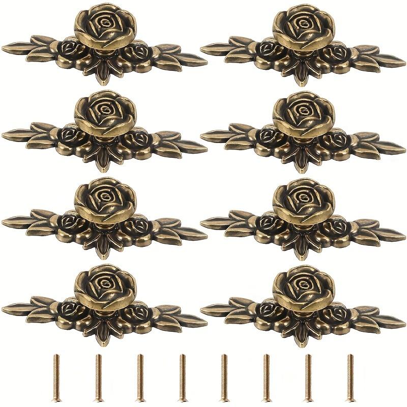 8 шт. Элегантные ручки для шкафов Rose с задней панелью из античной бронзы, ручки для ящиков из цинка для комодов, ящиков, шкафов, с крепежными винтами