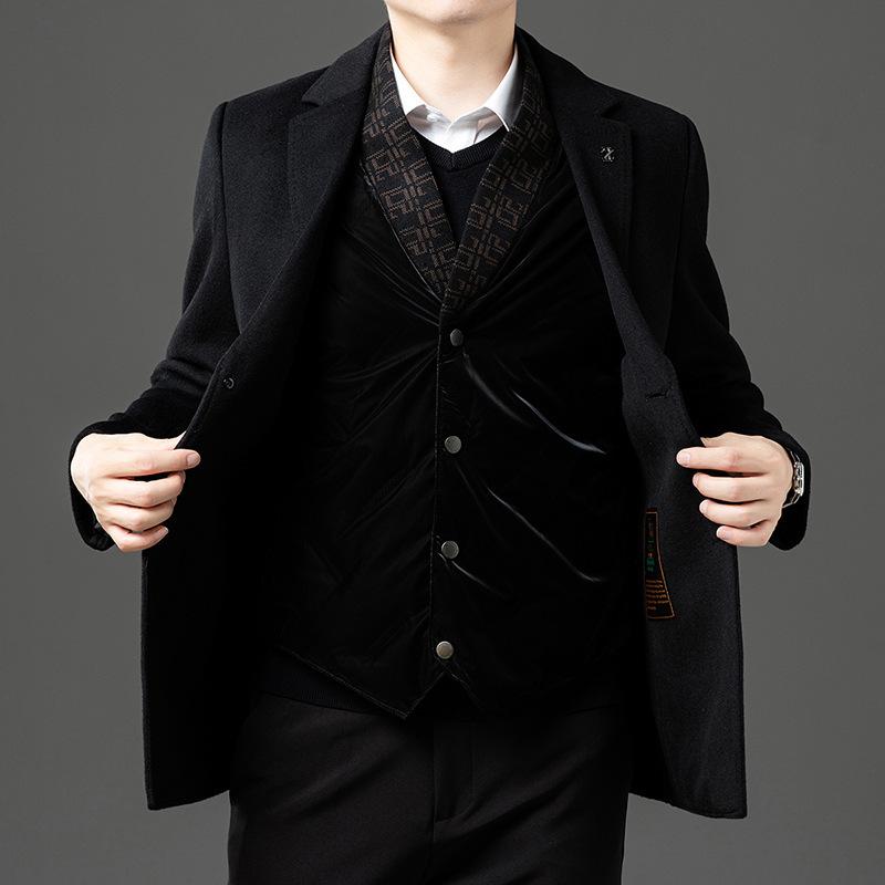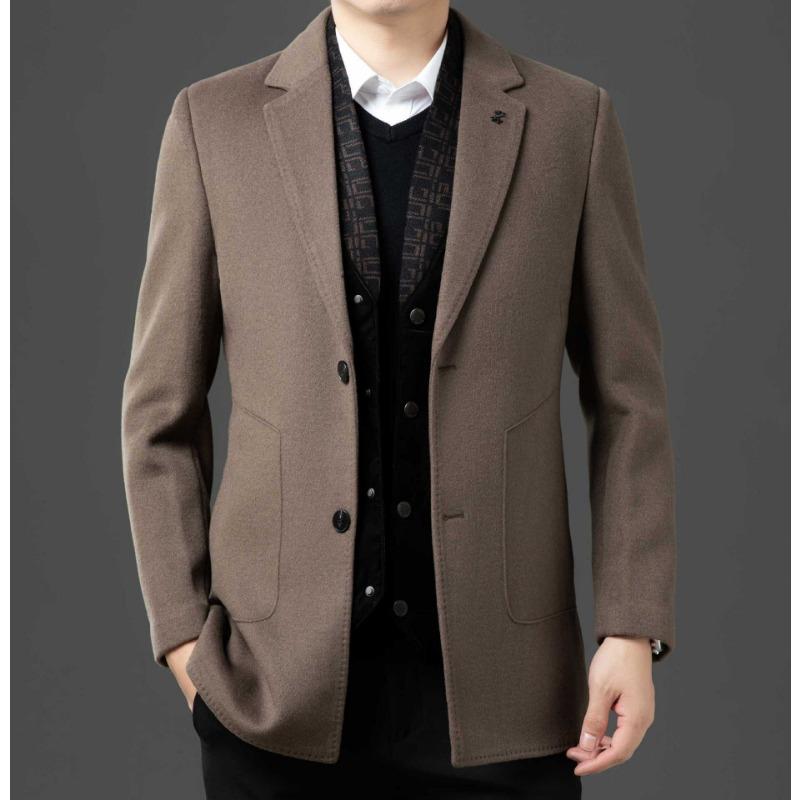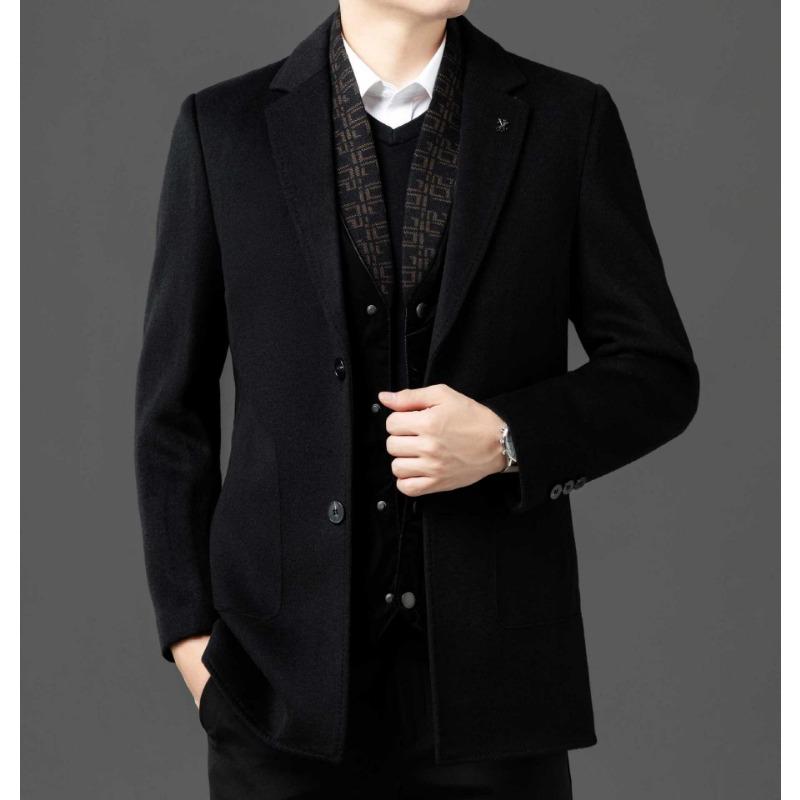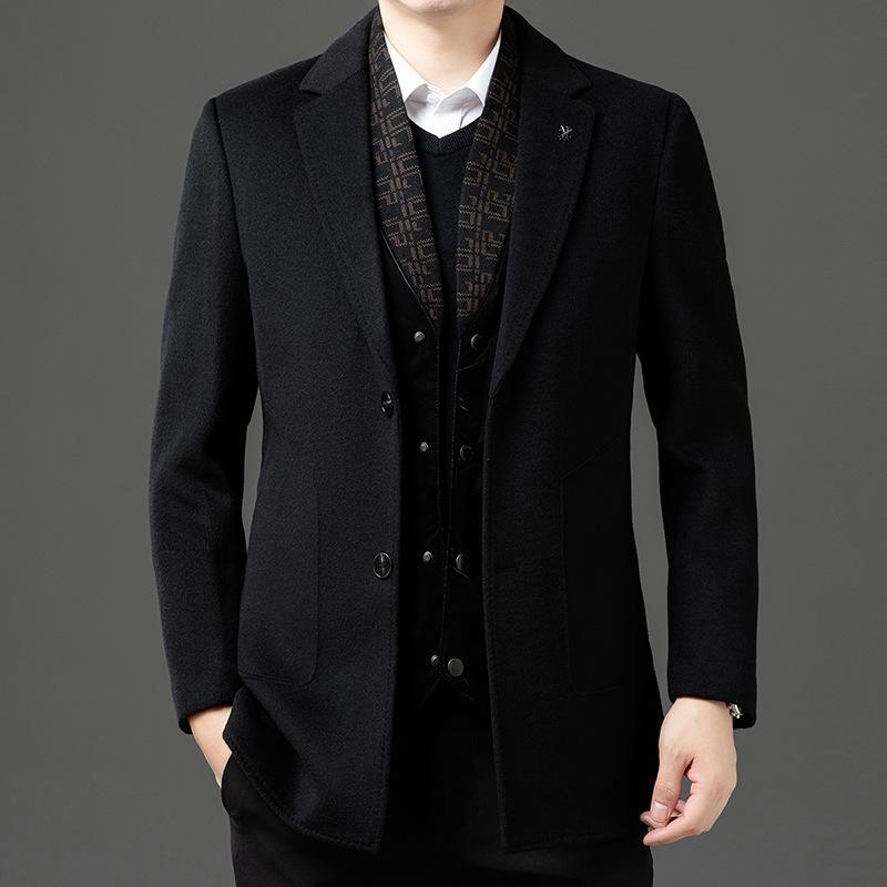 Осенне-зимнее двухстороннее шерстяное пальто со съемной подкладкой для мужчин, деловое, повседневное, средней длины, с воротником, шерстяное пальто высокого класса
