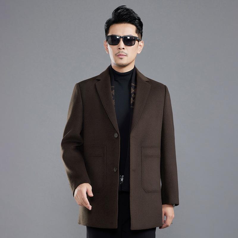 Зимнее мужское кашемировое пальто с карманами и двухсторонним воротником, средней длины, со съемным пуховиком, повседневное шерстяное пальто — купить товар онлайн с бесплатной доставкой по всему миру!