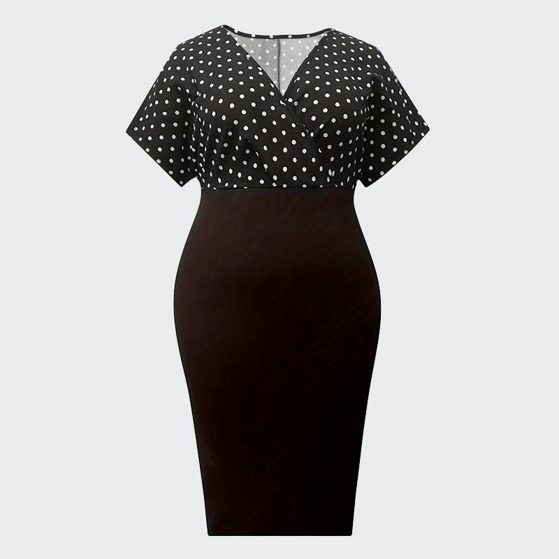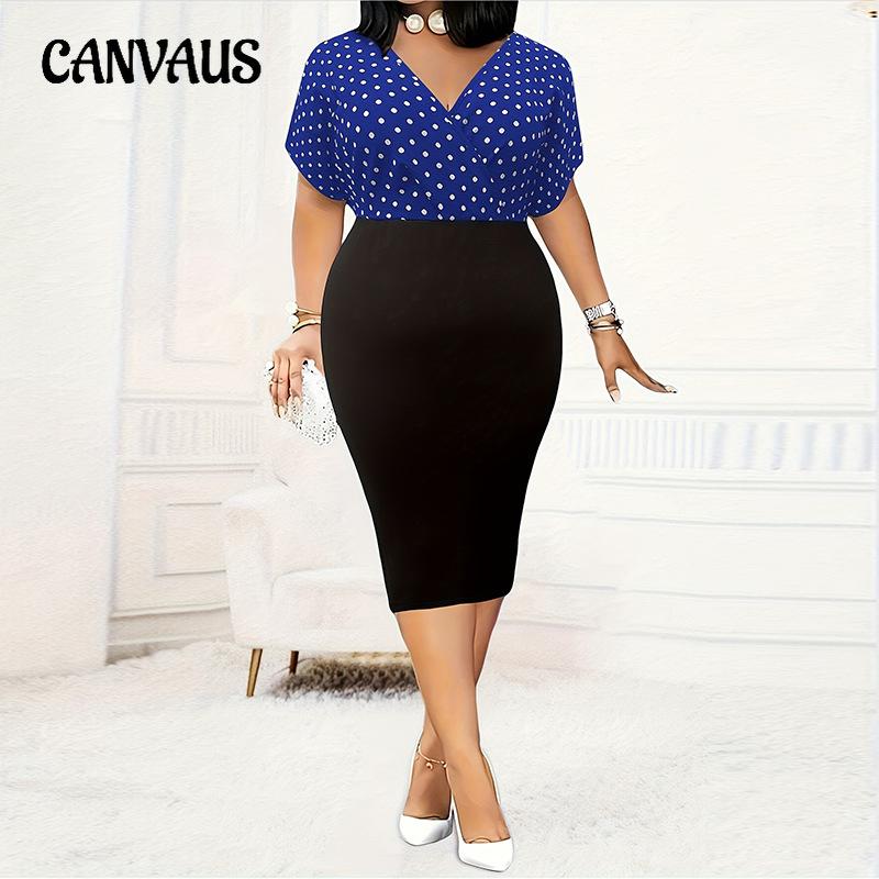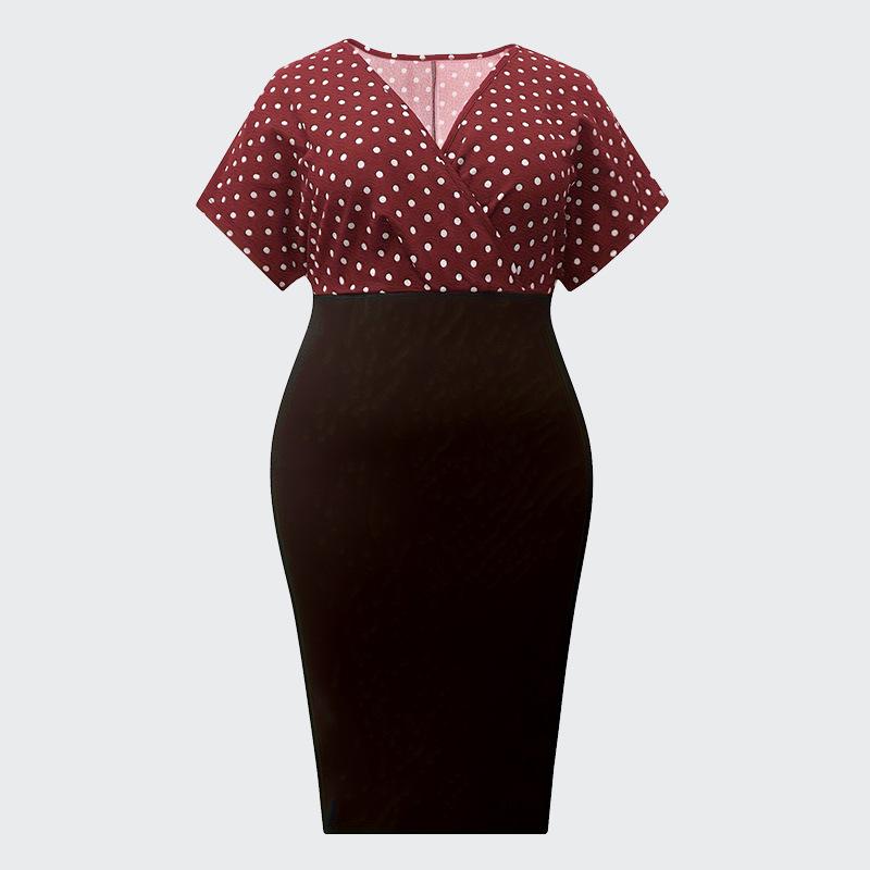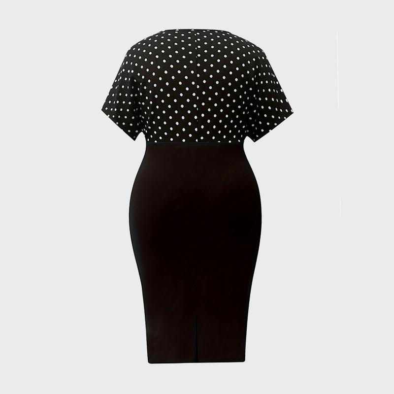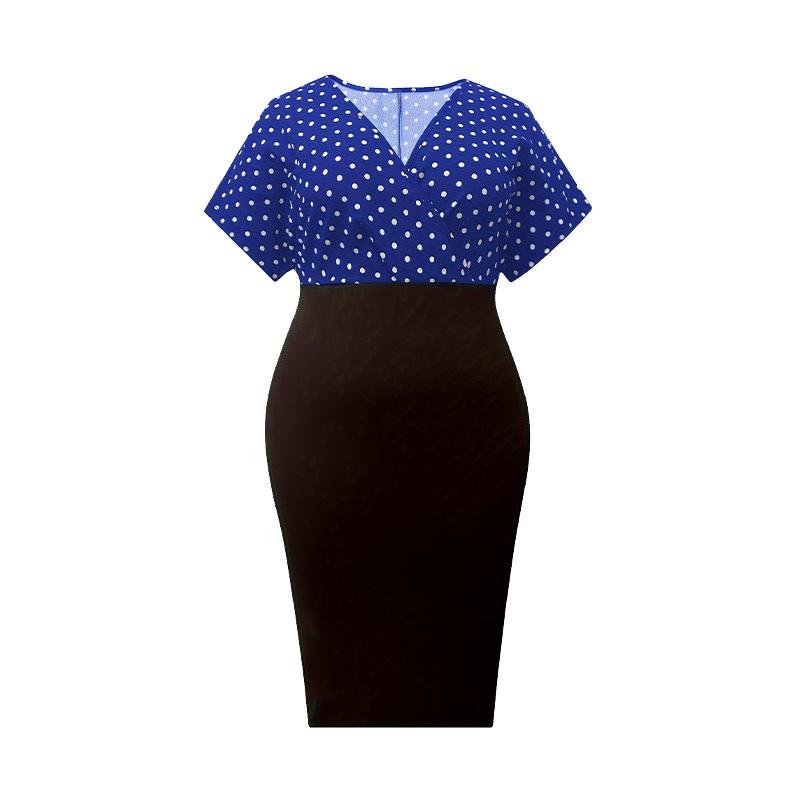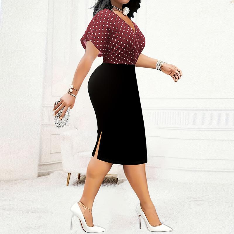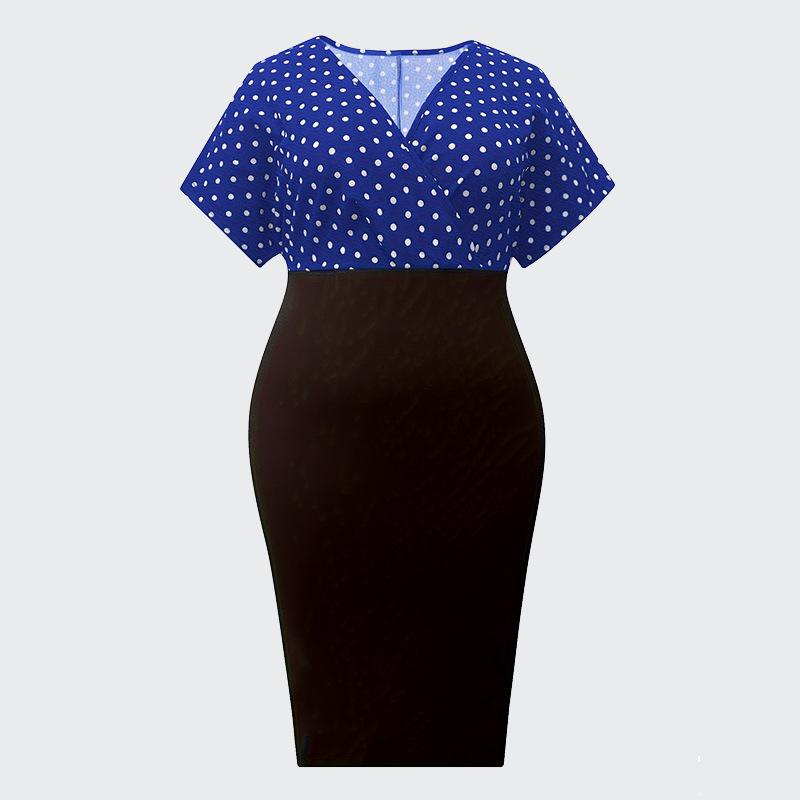 Плюс Размер Женское Темпераментное Цветное Контрастное Горошек V-образный вырез Короткие рукава Платье с Запахом на бедрах