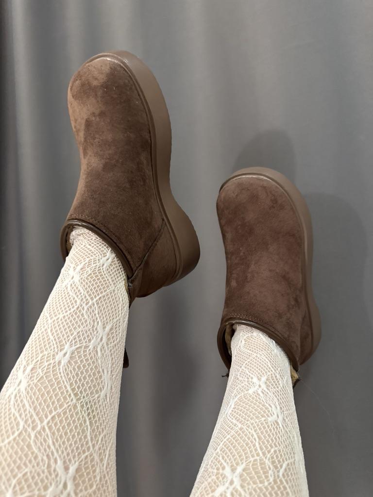 Ботильоны на плоской подошве из замши на платформе, зимние, плюшевые, теплые, хлопковые, туфли на среднем каблуке, модные ботинки 2025 года, готические, челси, Botas Mujer — купить товар онлайн с бесплатной доставкой по всему миру!