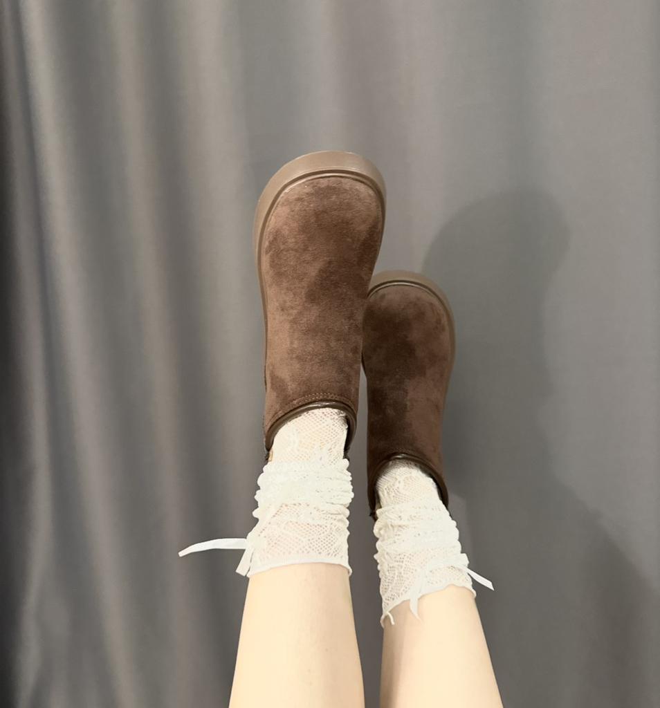 Ботильоны на плоской подошве из замши на платформе, зимние, плюшевые, теплые, хлопковые, туфли на среднем каблуке, модные ботинки 2025 года, готические, челси, Botas Mujer