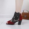 Весна-лето Новые женские туфли на высоком каблуке на платформе, женские толстые каблуки, сексуальные черные кружевные босоножки с открытым носком, модные женские туфли
