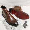 Мужские ботинки с красной подошвой, ручная работа, однотонные, на шнуровке, классические, деловые, ботильоны для мужчин, модная мужская обувь