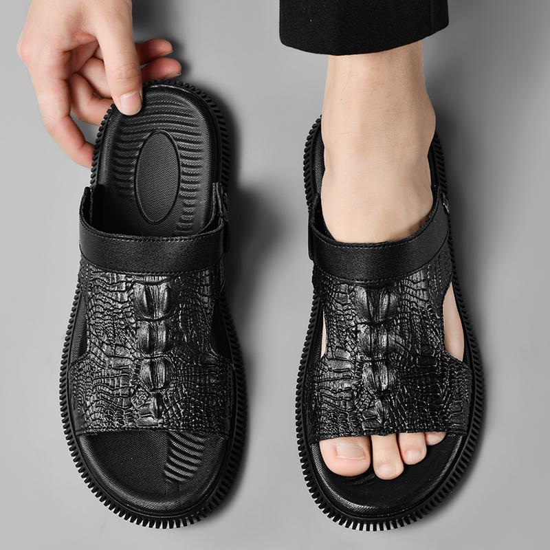 Высококачественные мужские сандалии с крокодиловым узором, модные тапочки, брендовые мужские уличные удобные дышащие и нескользящие тапочки